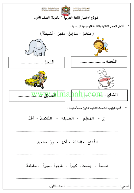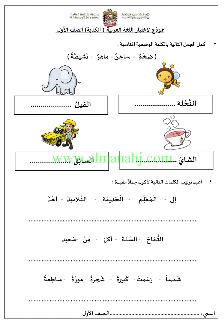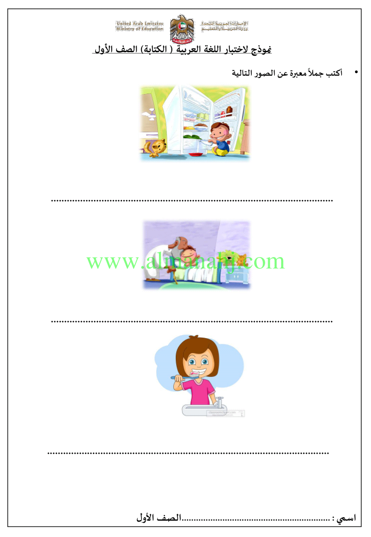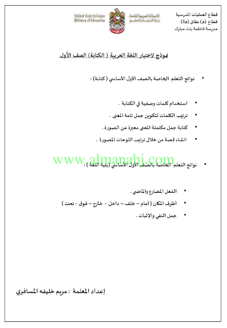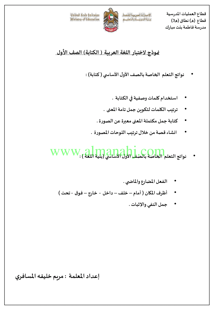 معلومات الملف: الصف الأول, الفصل الثالث, لغة عربية, 2017-2018,نموذجاختبار كتابي | |||