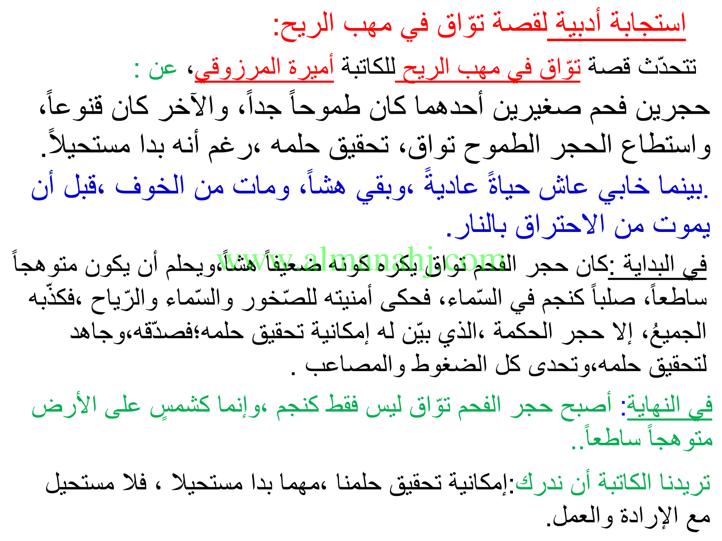 معلومات الملف: الصف الخامس, الفصل الثالث, لغة عربية, 2017-2018, الاستجابة الادبية لقصص اللغة العربية | |||