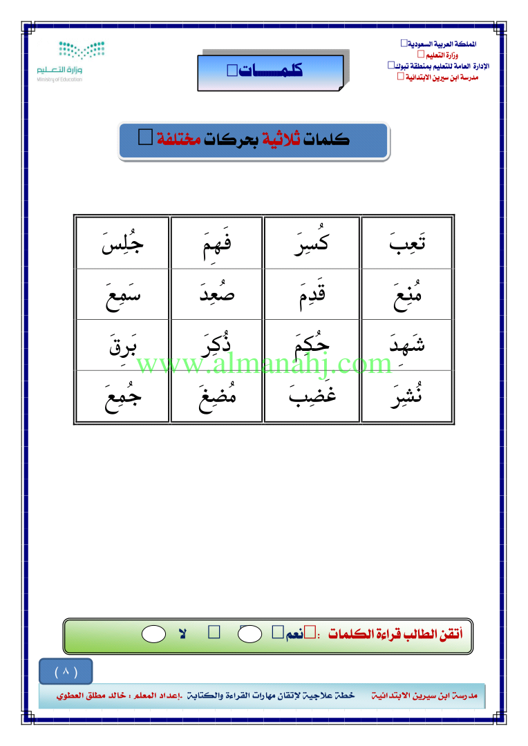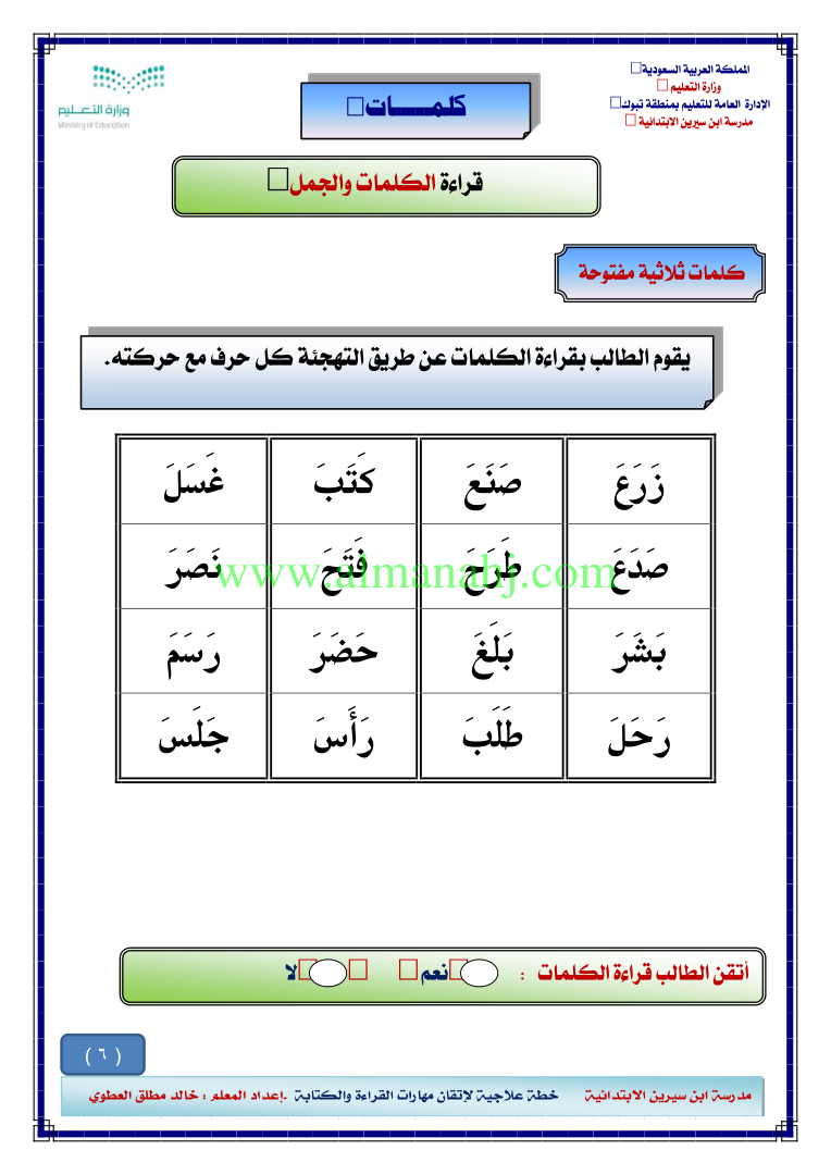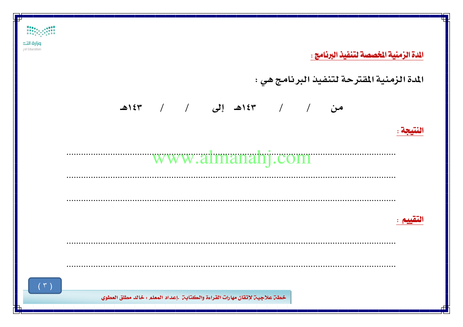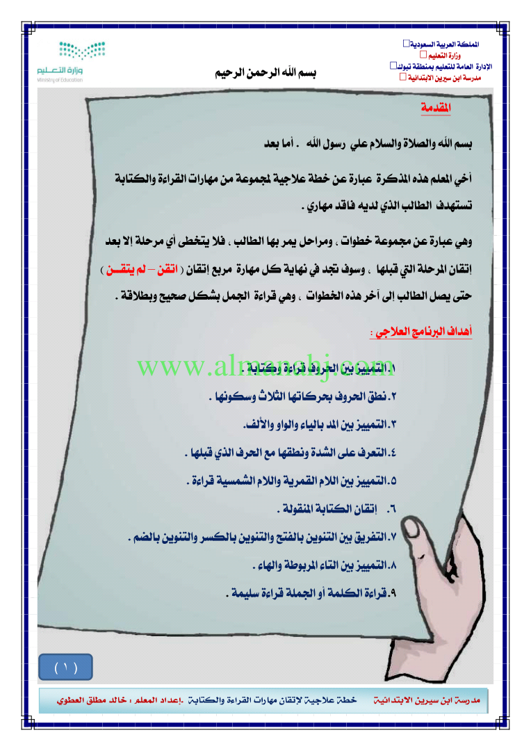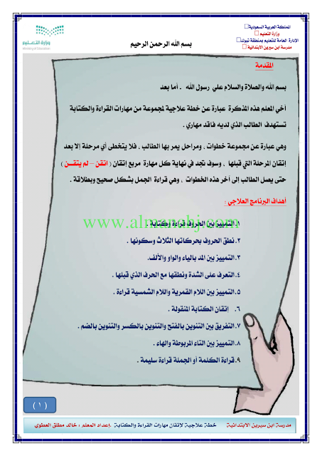 | اضغط هنا لتحميل وعرض ( خطة علاجية لاتقان مهارات القراءة والكتابة ) | |||