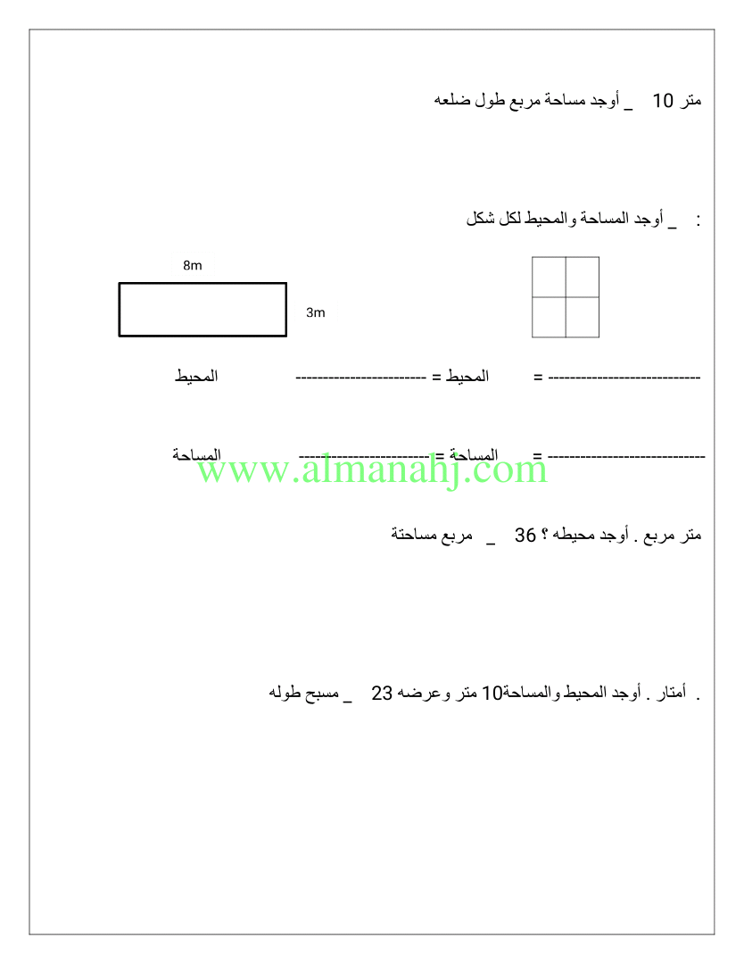 اضغط هنا لتحميل وعرض ( ورقة عمل المساحة والمحيط ) |