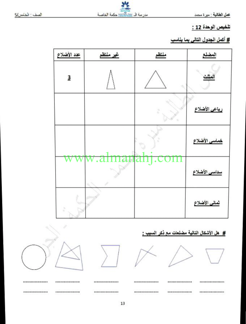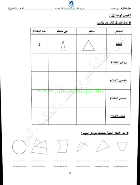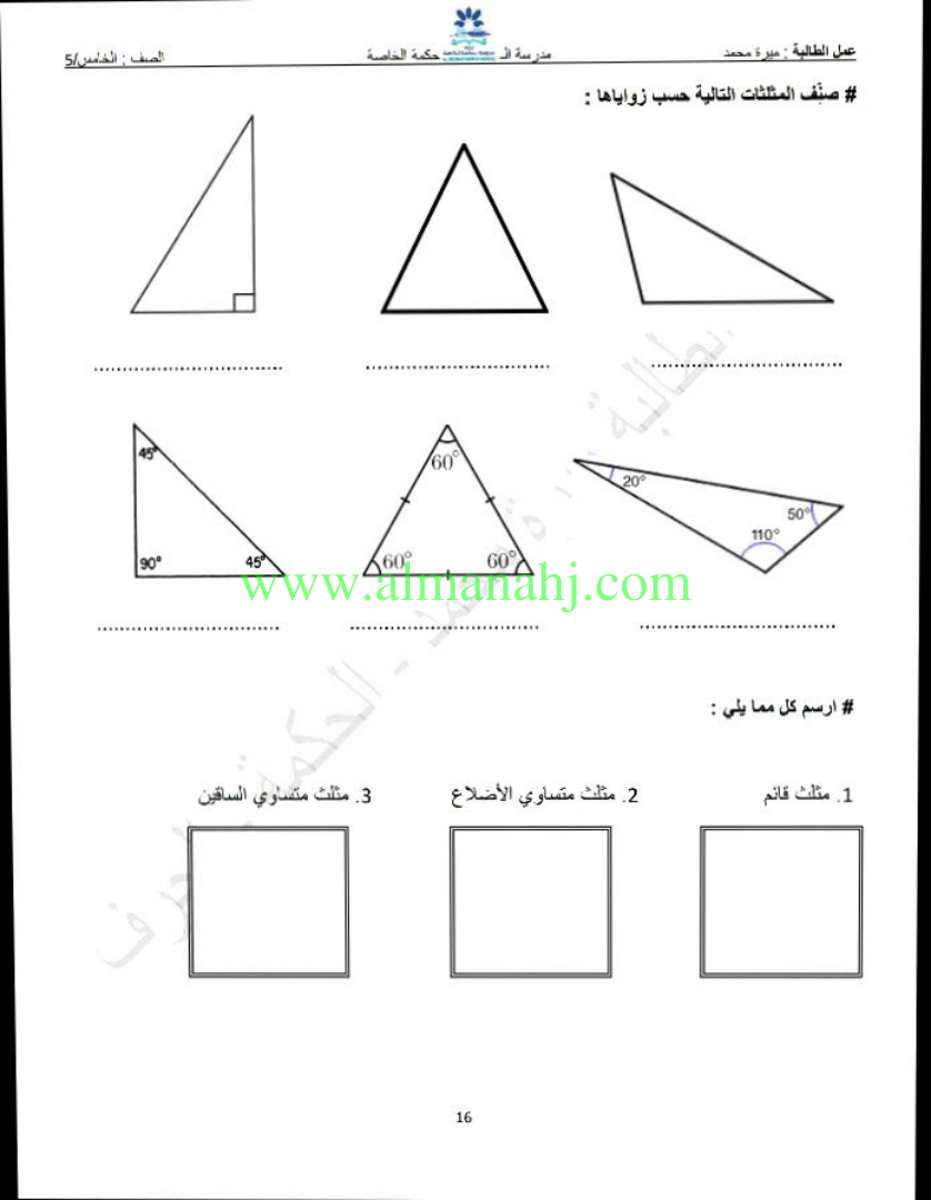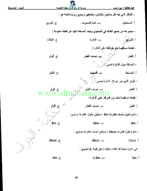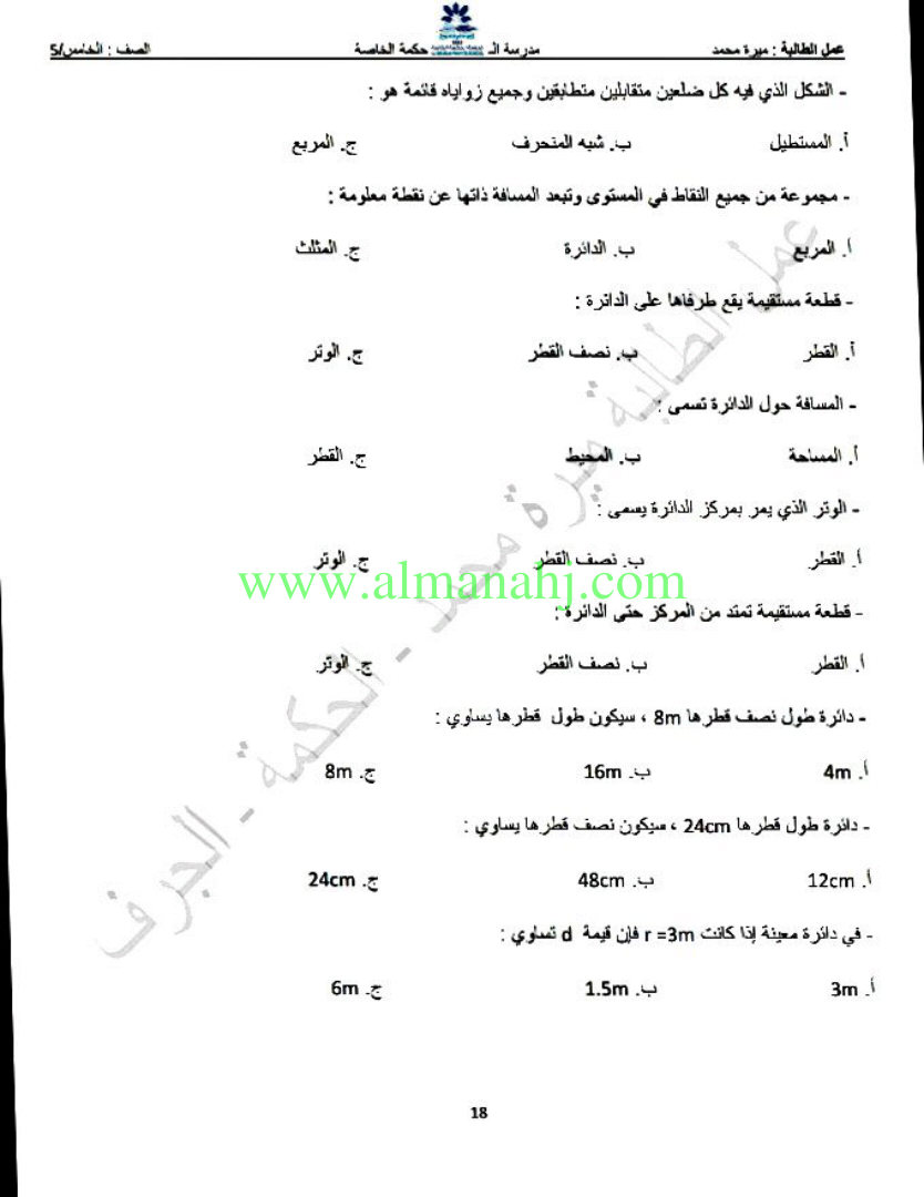 معلومات الملف: الصف الخامس, الفصل الثالث, رياضيات, 2017-2018, مراجعة الهندسة | |||