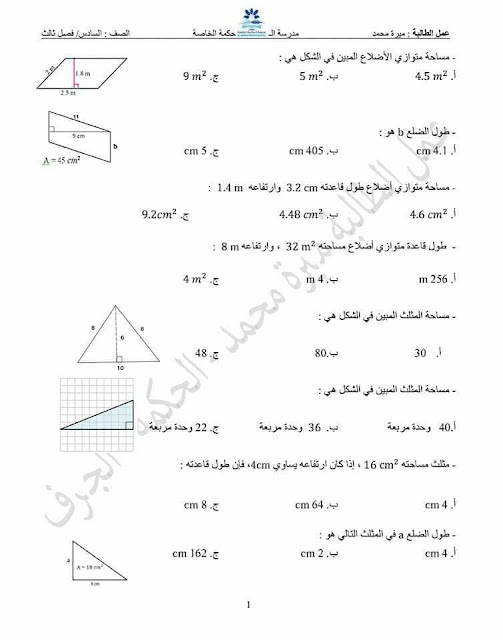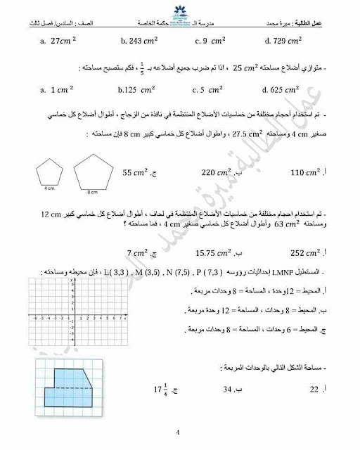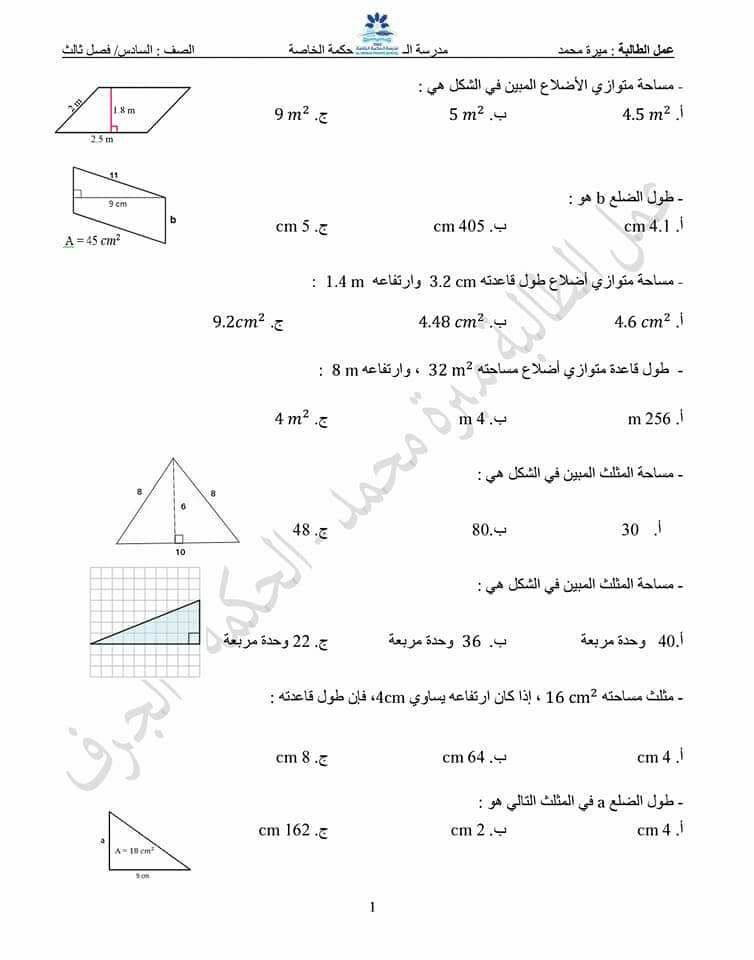 معلومات الملف: الصف السادس, الفصل الثالث, رياضيات, 2017-2018, اوراق عمل شاملة عددها 5 | ||
