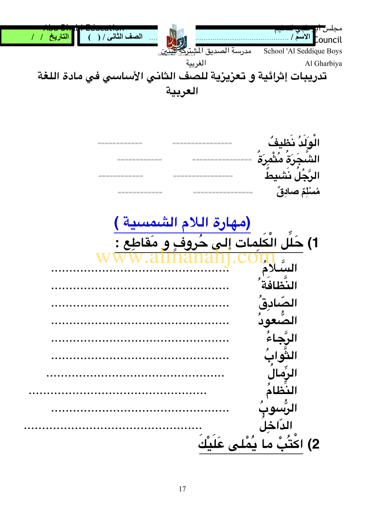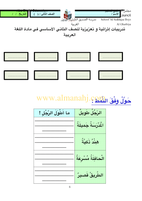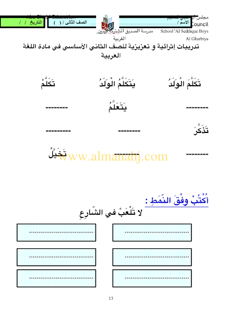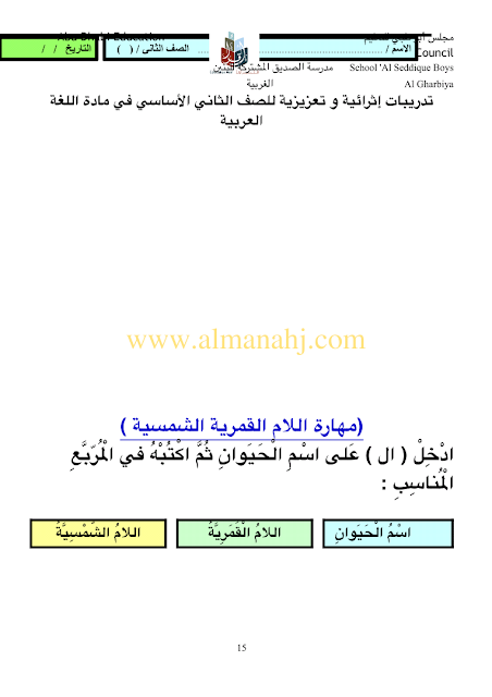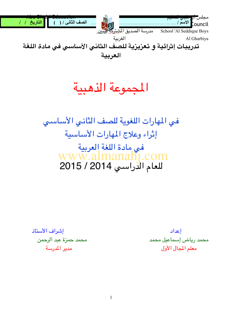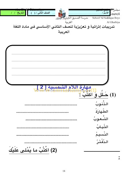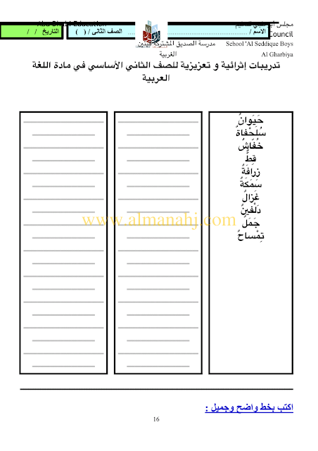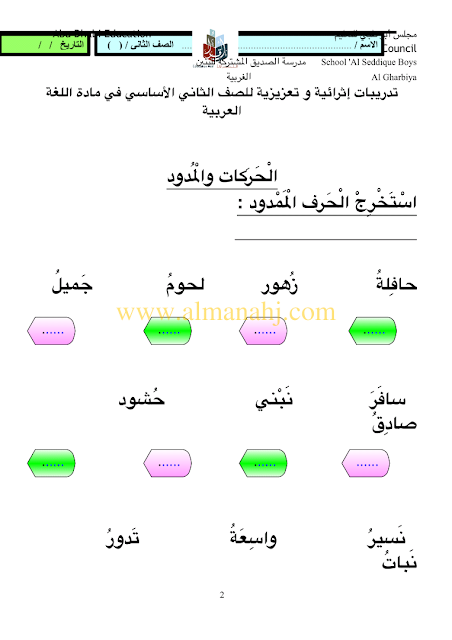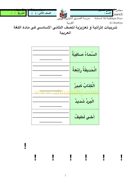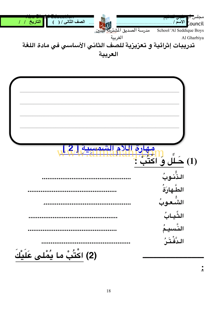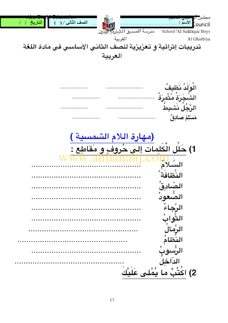معلومات الملف: الصف الثاني, الفصل الثالث, لغة عربية, 2017-2018, مهارات لغوية تدريبات اثرائية وتعزيزية للصف الثاني | |||