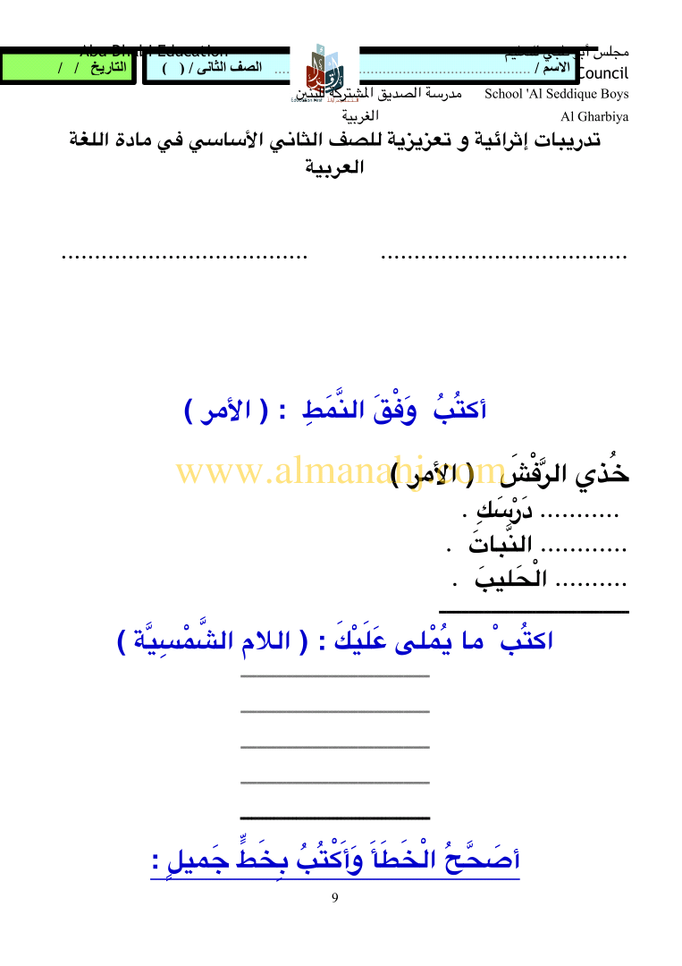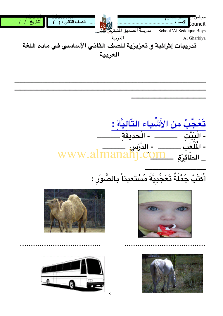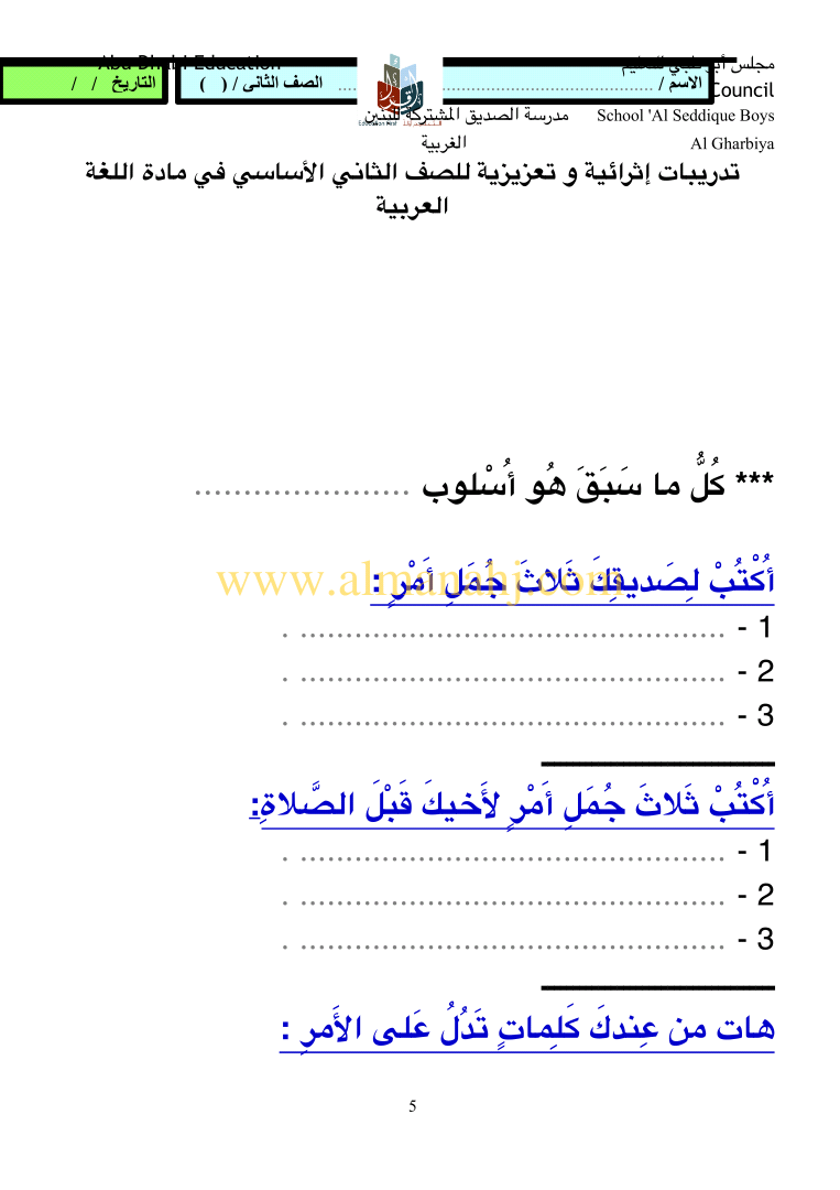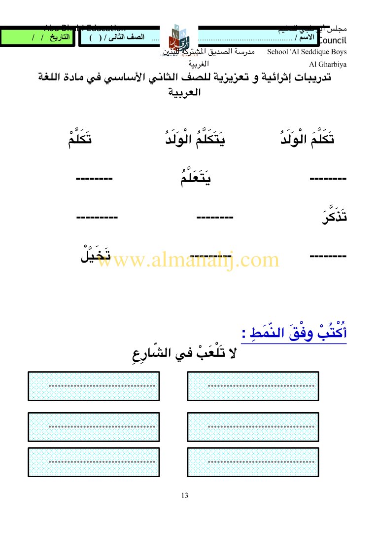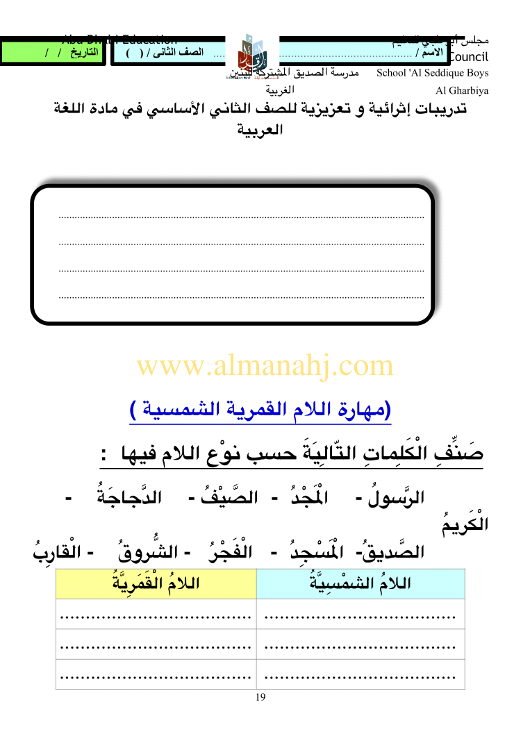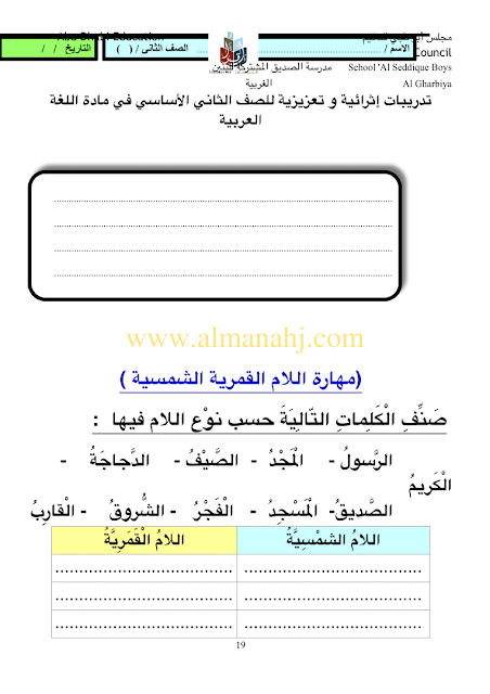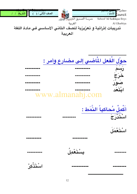 معلومات الملف: الصف الثاني, الفصل الثالث, لغة عربية, 2017-2018, مهارات لغوية تدريبات اثرائية وتعزيزية للصف الثاني | |||