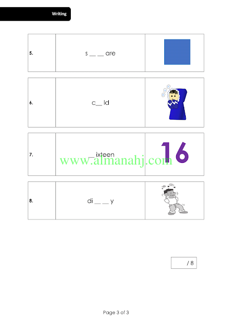 معلومات الملف: الصف الأول, الفصل الثالث, لغة انكليزية, 2017-2018, Writing Examination | |||