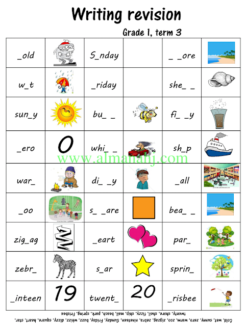 معلومات الملف: الصف الأول, الفصل الثالث, لغة انكليزية, 2017-2018, Writing revision | |||
