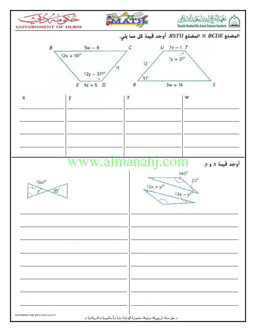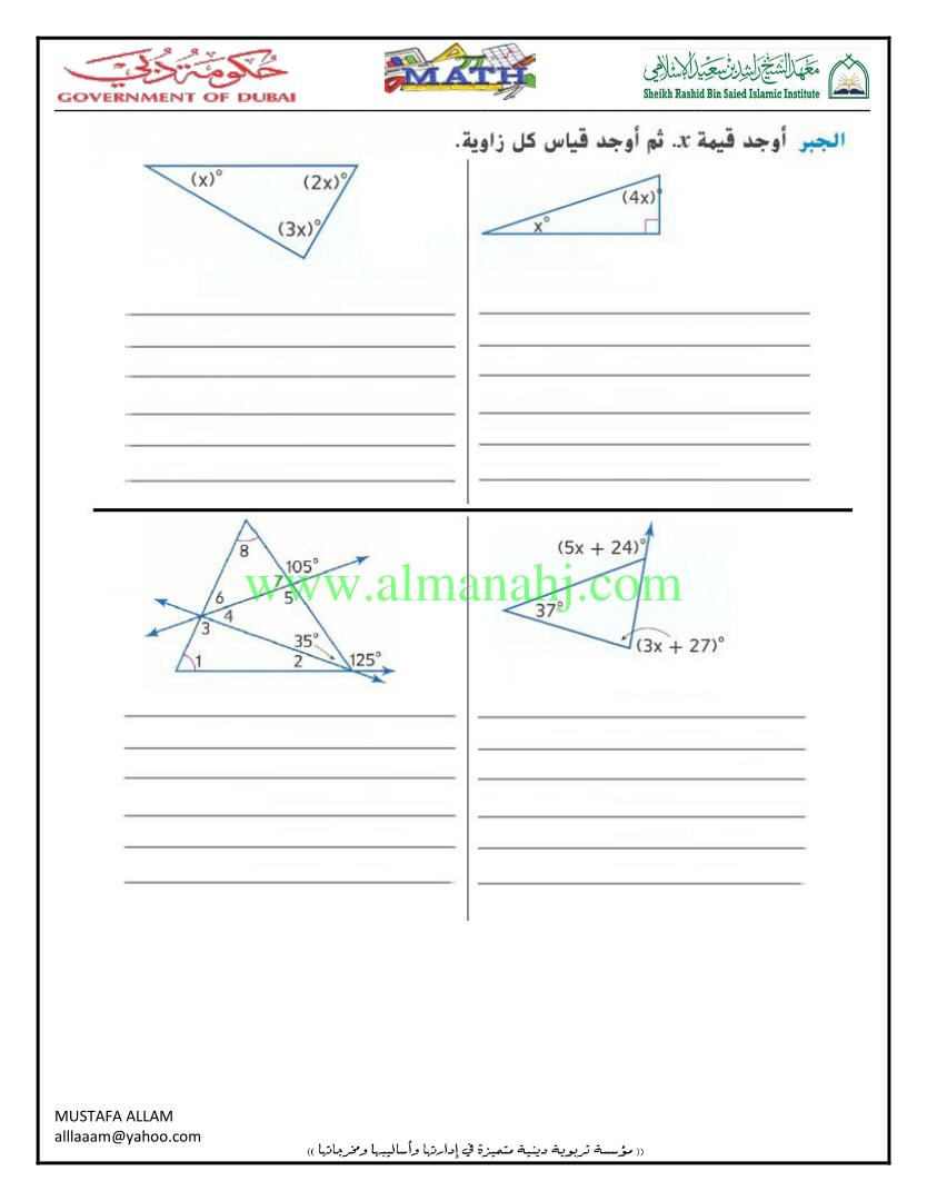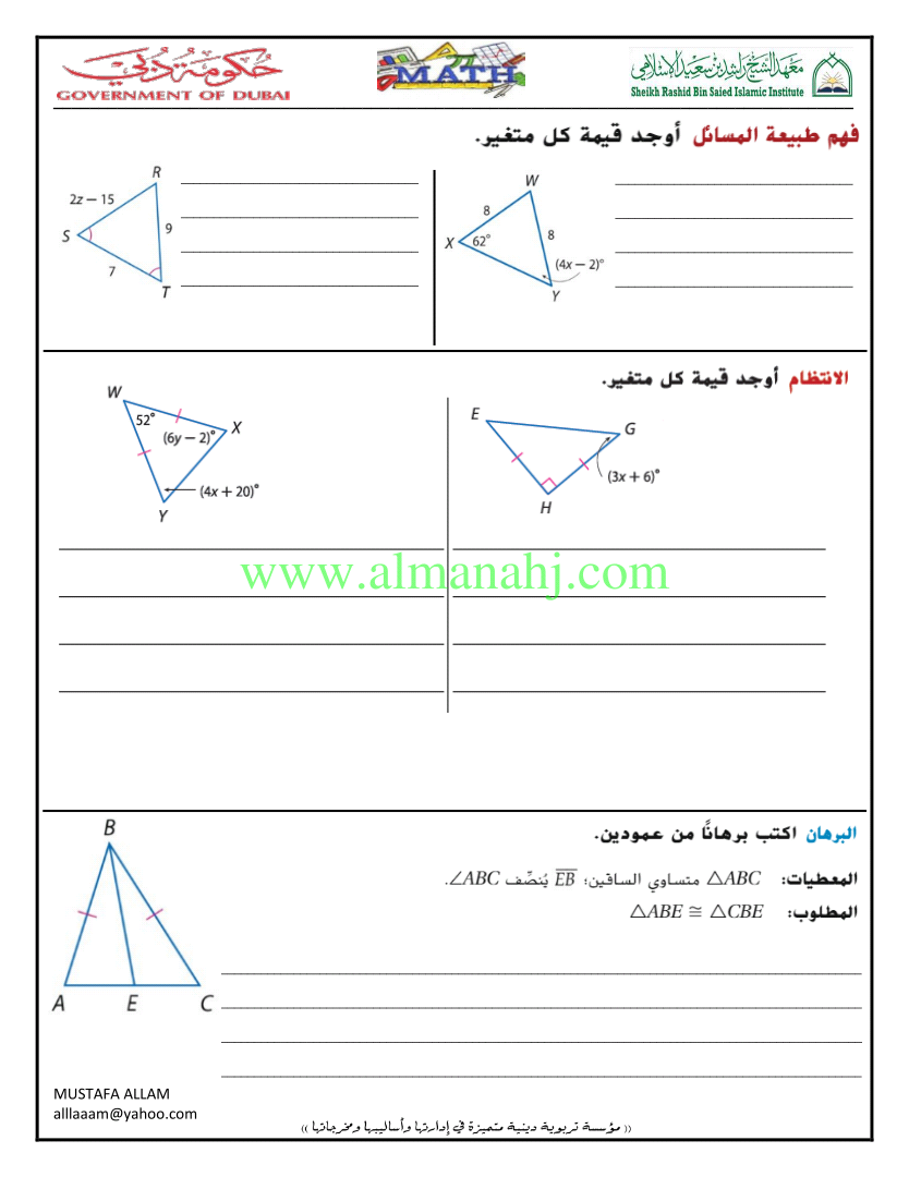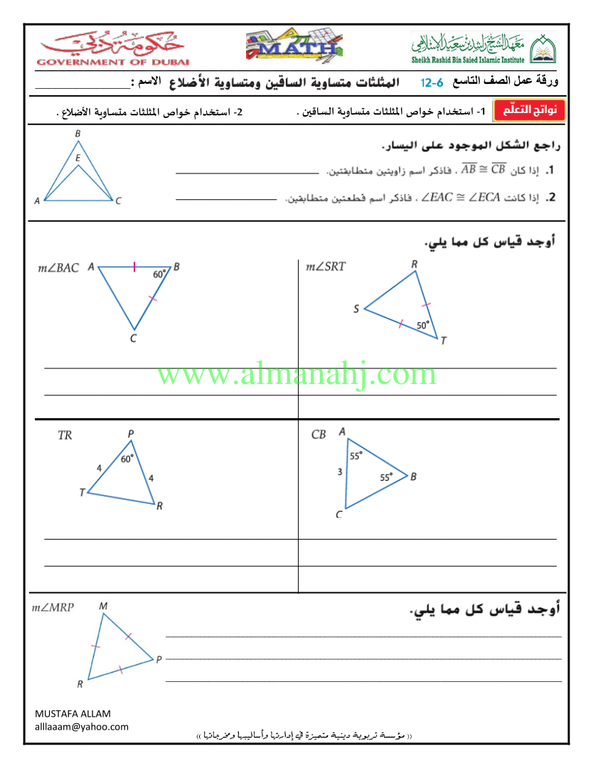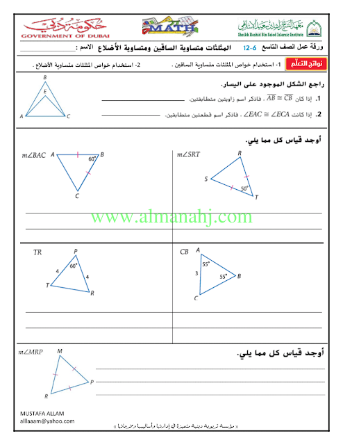 معلومات الملف: اوراق عمل الوحدة12 المثلثات | |||