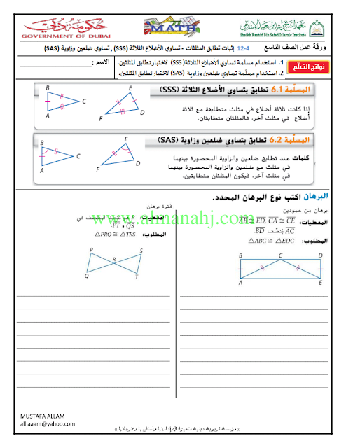 | أنت هنا: موقع المناهج ⇦ المناهج الإماراتية ⇦ الصف التاسع العام ⇦ رياضيات ⇦ الفصل الثالث ⇦ أوراق عمل |