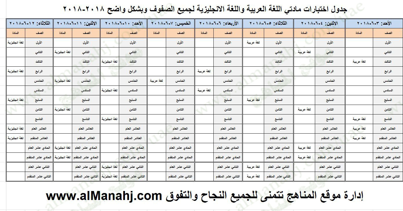 تفاصيل الخبر: جدول اختبارات مادتي اللغة العربية واللغة الانجليزية لجميع الصفوف وبشكل واضح 2017-2018