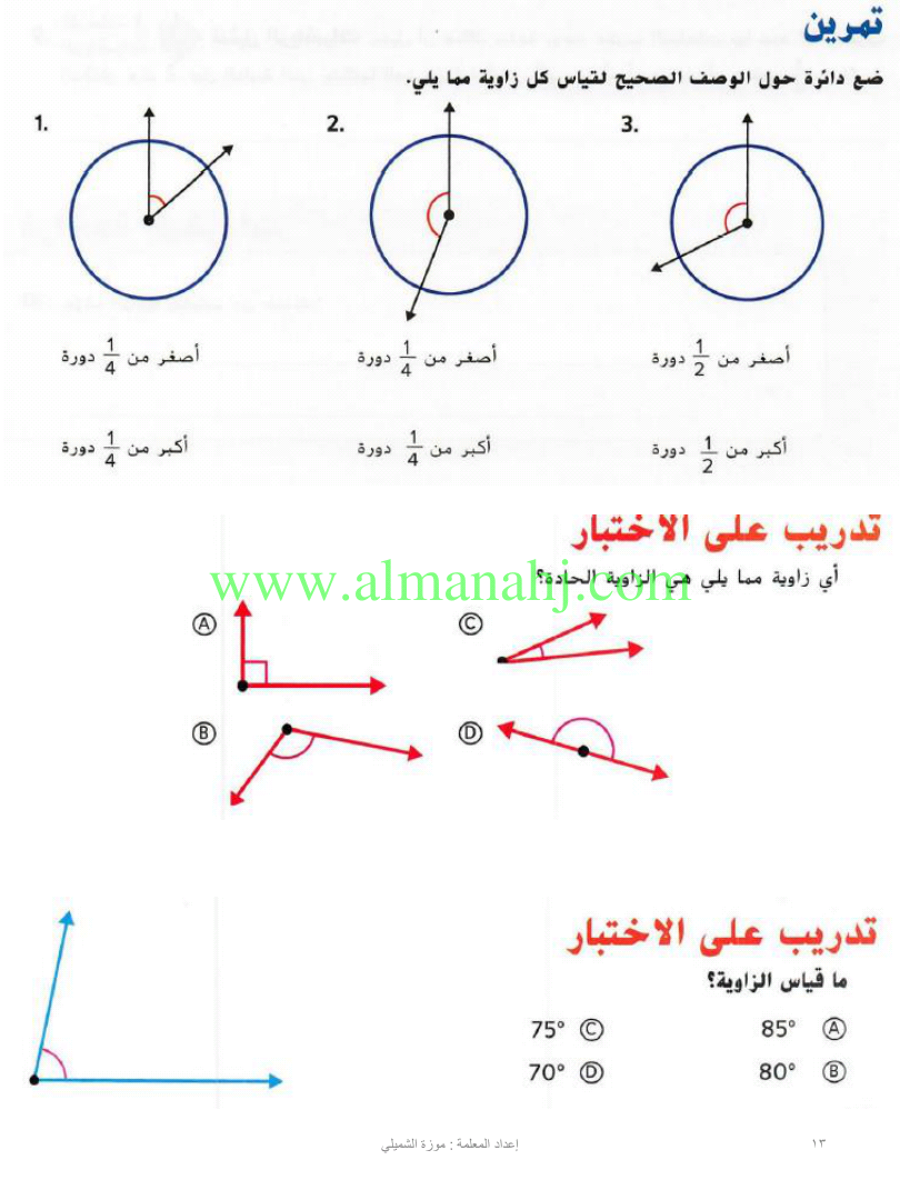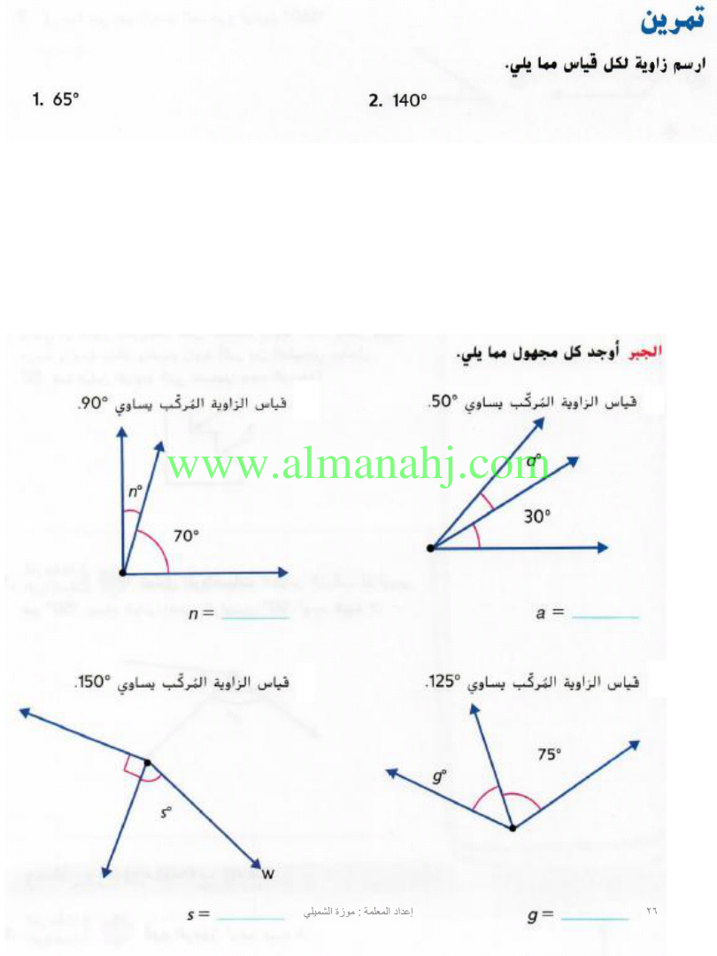 معلومات الملف: يحتوي الملف تمارين وتدريبات على الاختبار، وأنواع الزوايا | |||