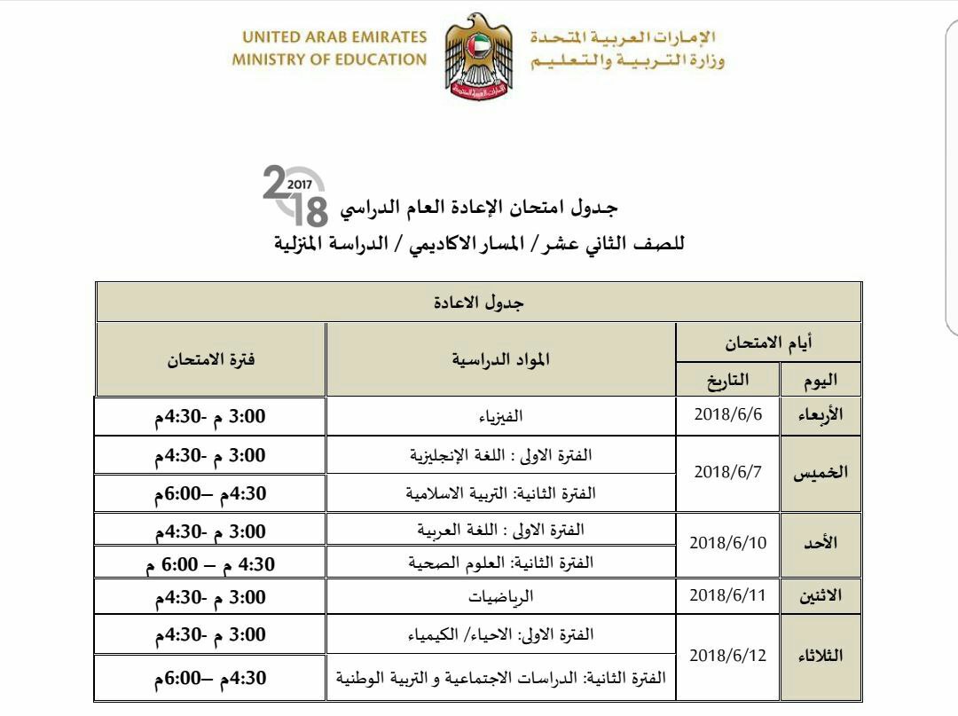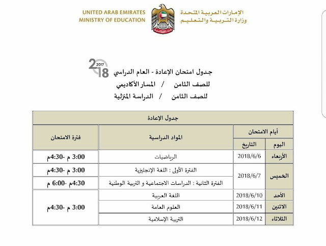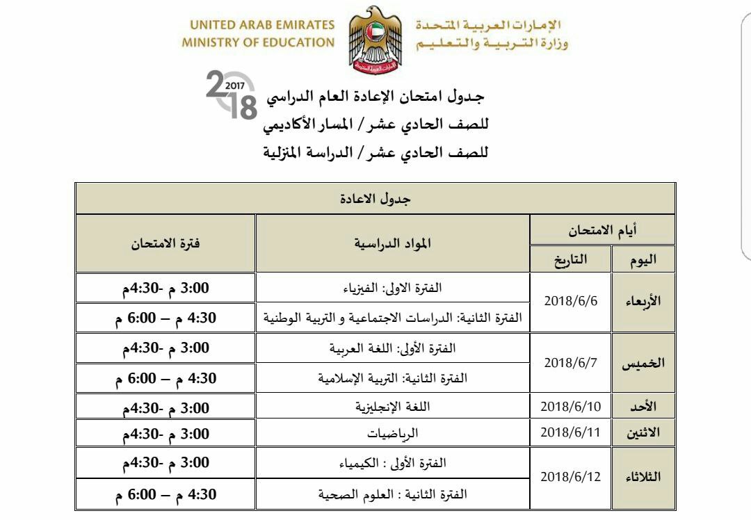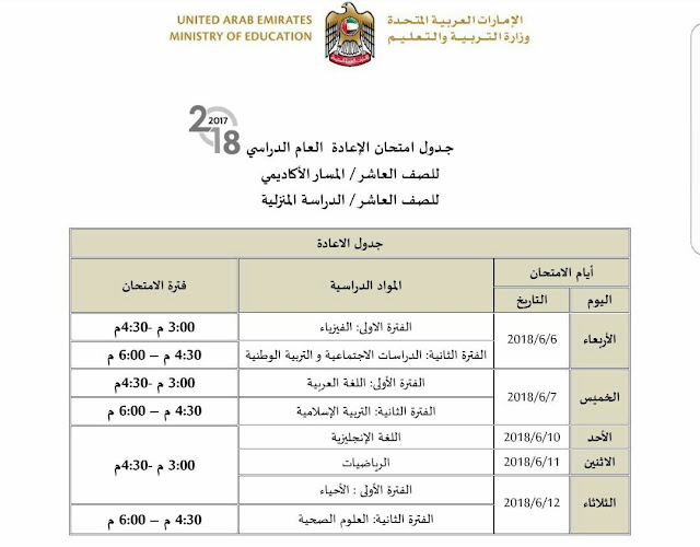 معلومات الملف: اعتمدت وزارة التربية جداول امتحانات الاعادة لطلبة التعليم المستمر ( الأكاديمي والدراسة المنزلية والسنة الرابعة مسار محو الأمية ) 2017-2018م، وهي كالتالي: | ||
