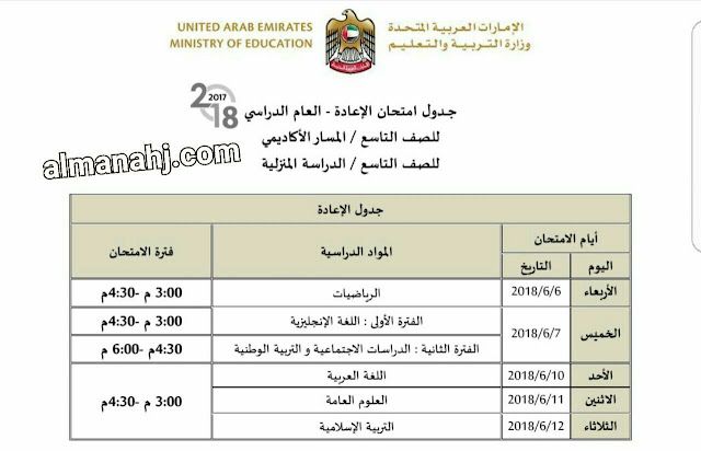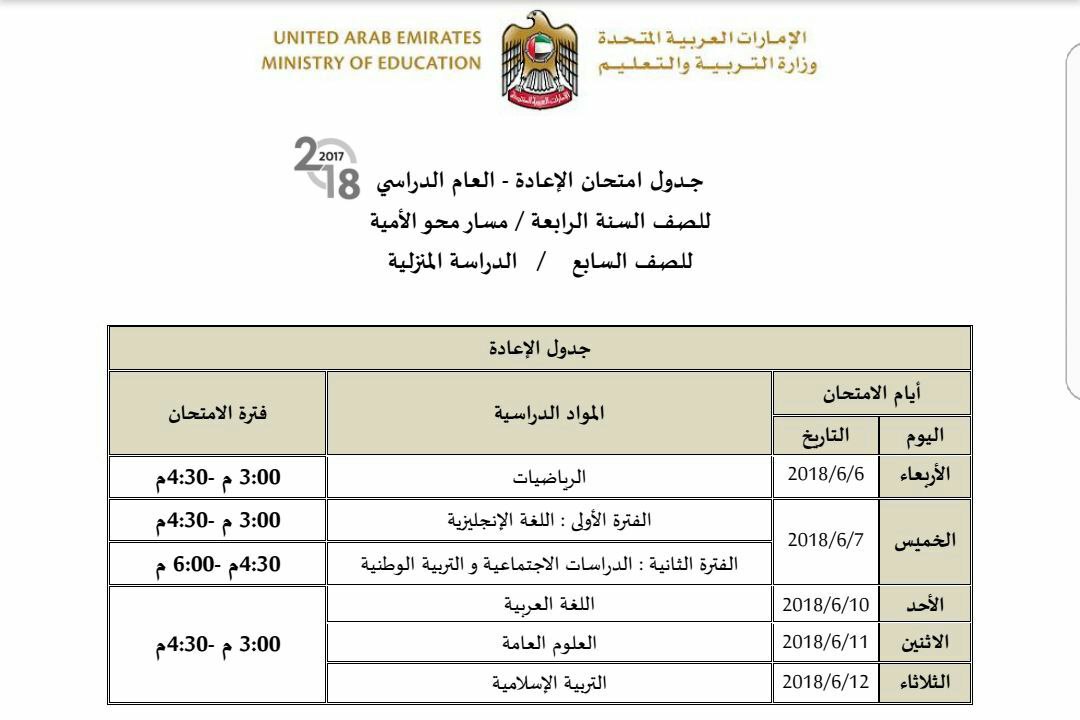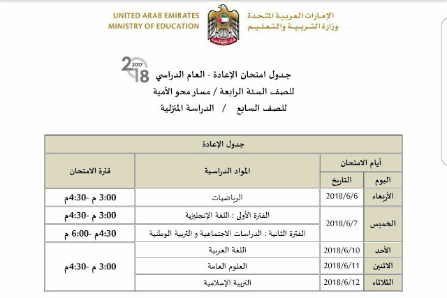 | وزارة التربية تعتمد جداول امتحانات الاعادة لطلبة التعليم المستمر ( الأكاديمي والدراسة المنزلية والسنة الرابعة مسار محو الأمية ) | ||
