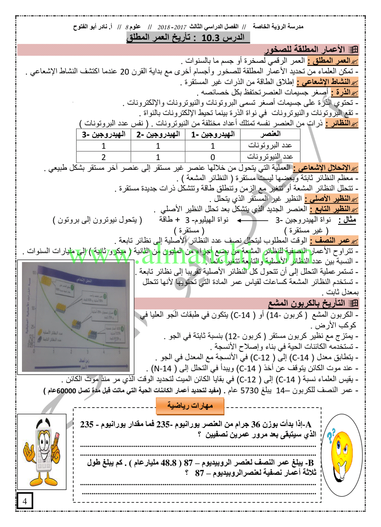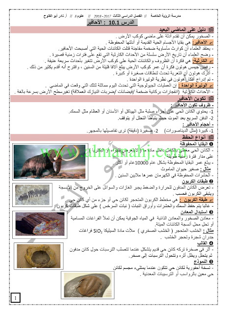 معلومات الملف: الصف الثامن, الفصل الثالث, علوم, 2017-2018, ادلة على ماض الارض | |||