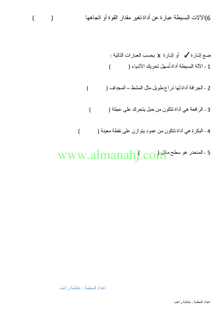 رابط تحميل وعرض ( ورقة عمل استخدام الالات البسيطة ) | |||