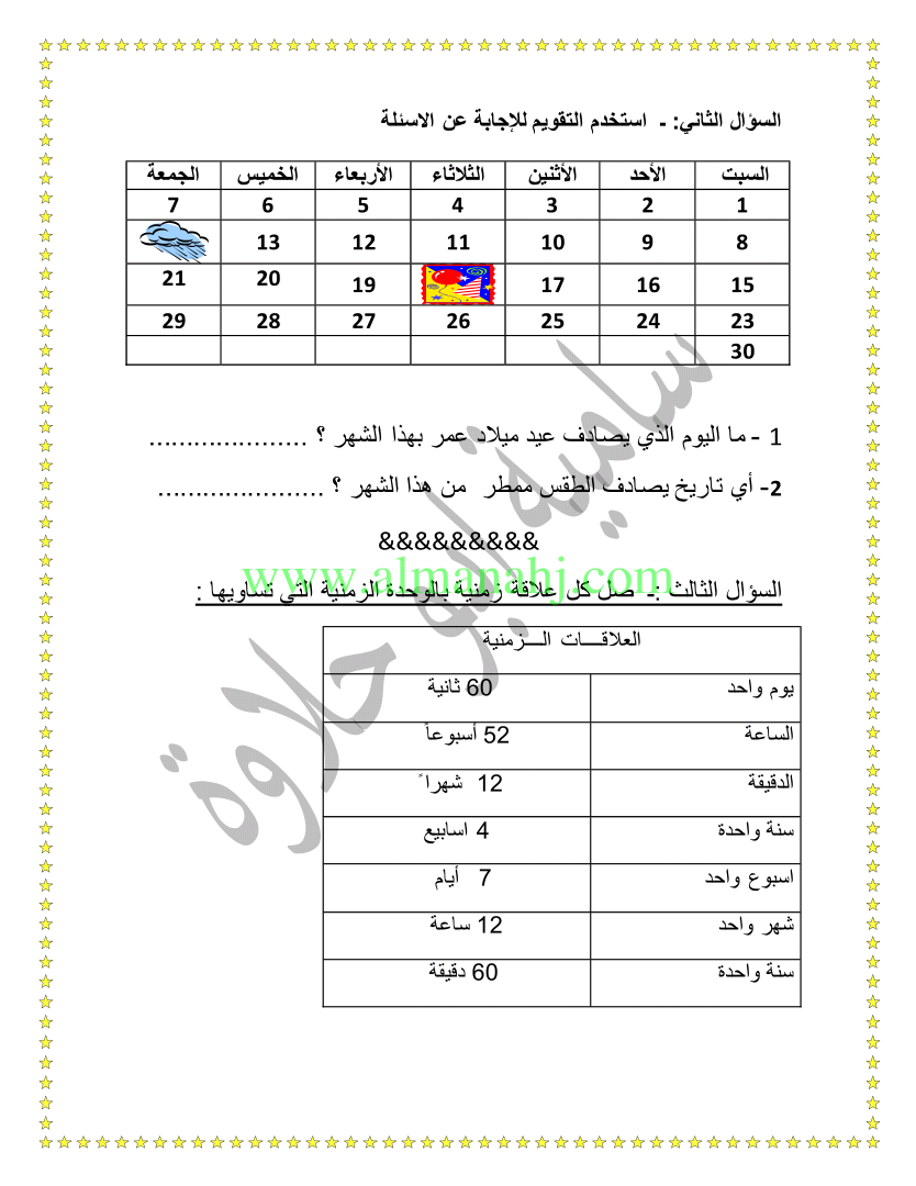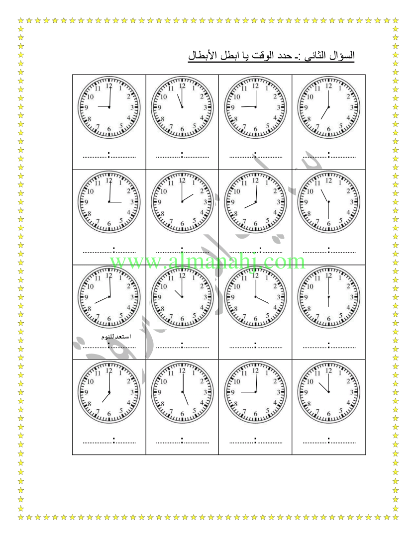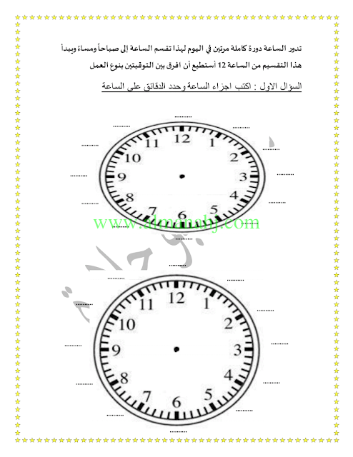 السابق: ورقة عمل الاطوال والاحجام | الملف الحالي: 5106 | التالي: أسئلة اختبار تقويم أول مدرسي | |