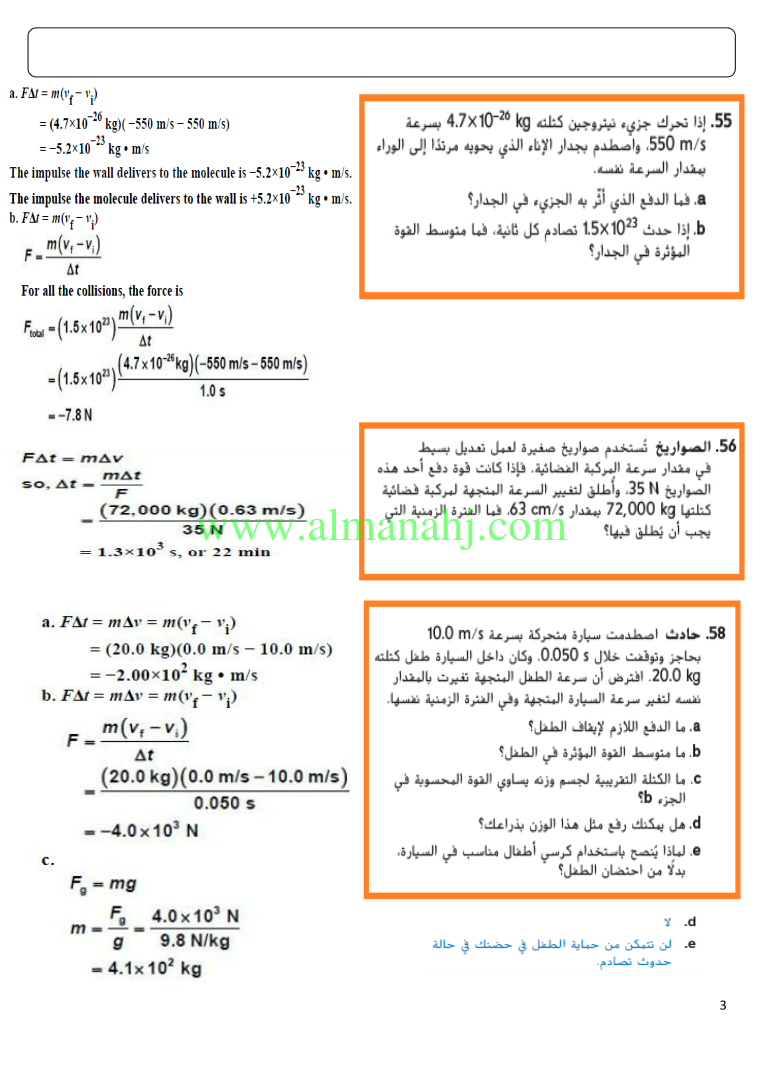 معلومات الملف: الصف العاشر المتقدم, الفصل الثالث, فيزياء, 2017-2018, مراجعة الزخم وحفظه | |||
