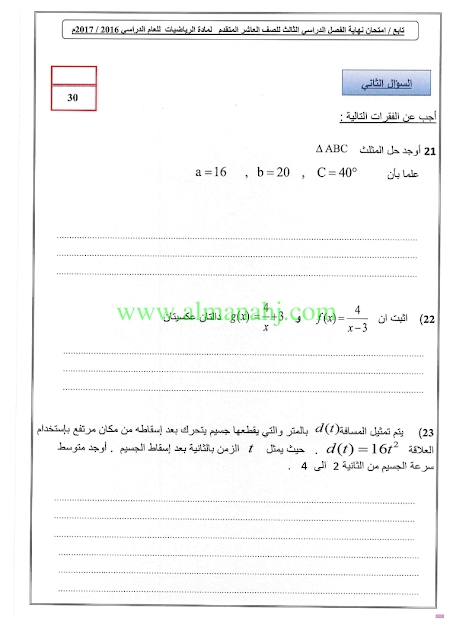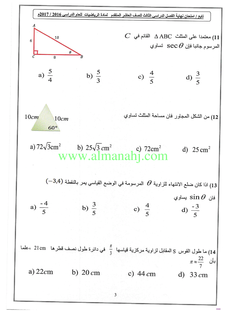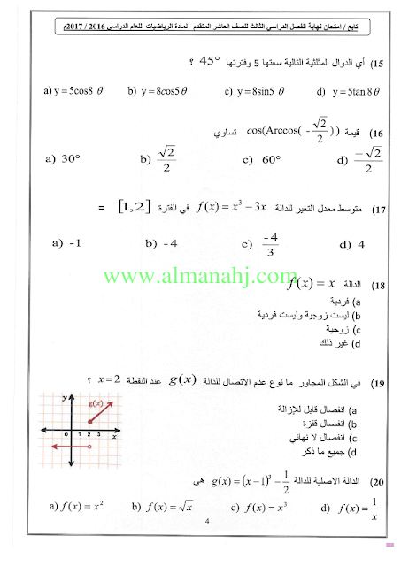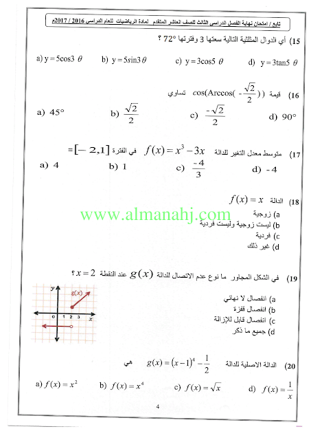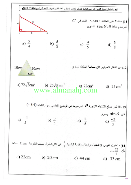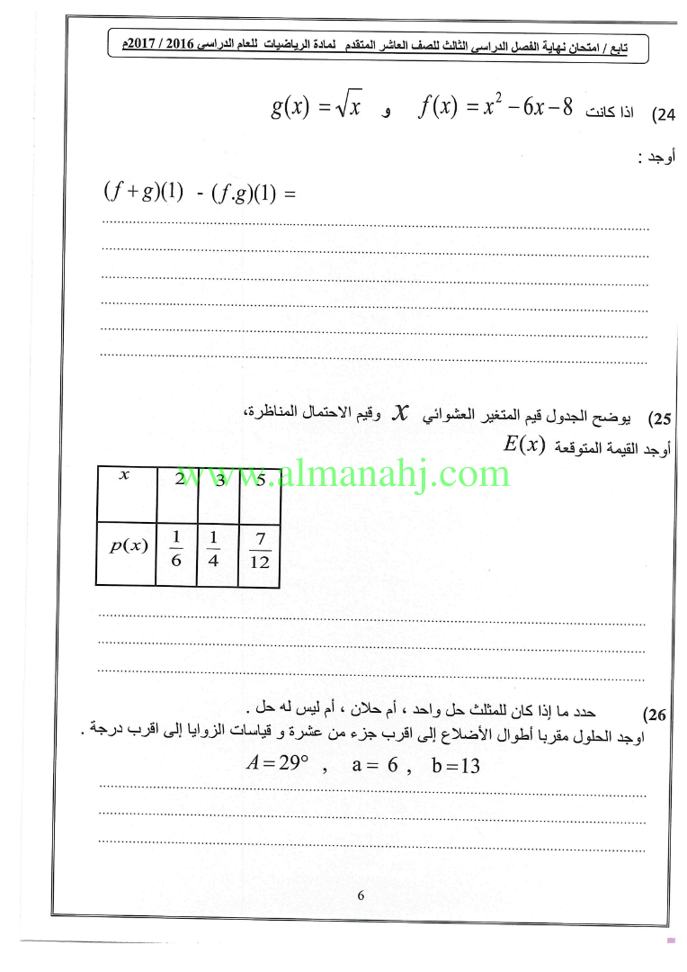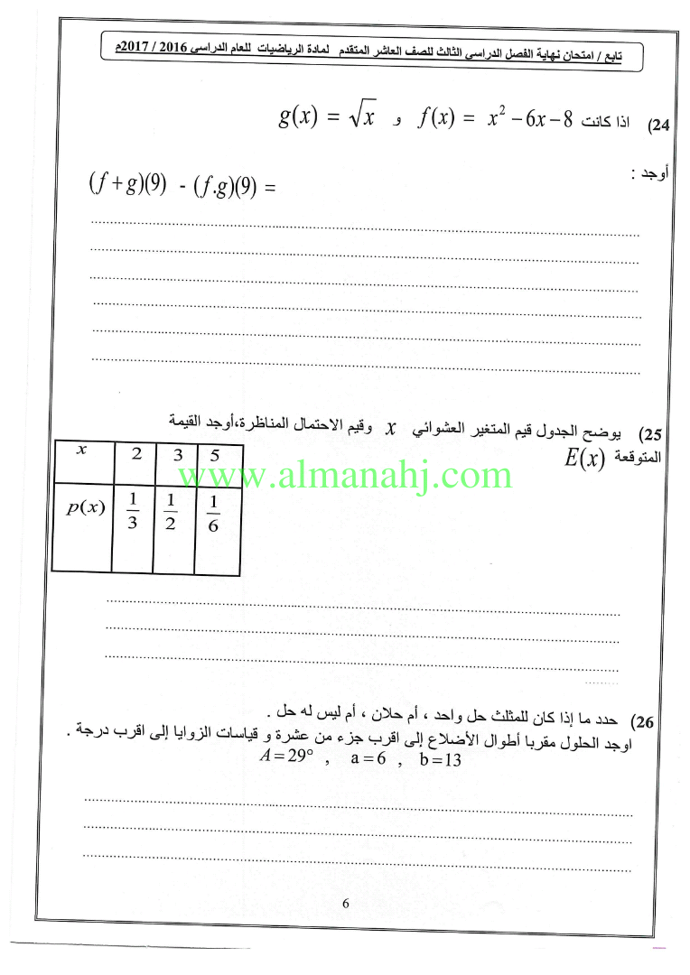 معلومات الملف: الصف العاشر المتقدم, الفصل الثالث, رياضيات, 2017-2018, امتحان نهاية العام 2017-2018 | |||