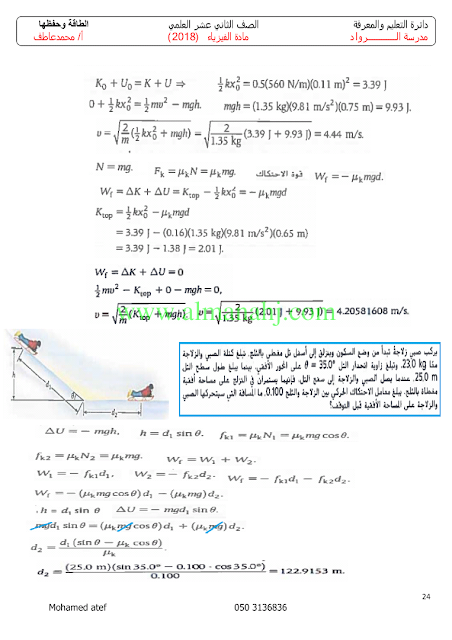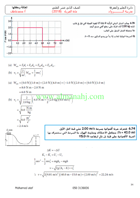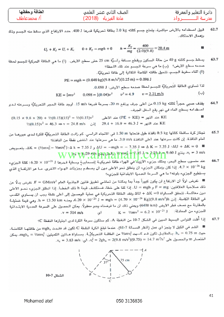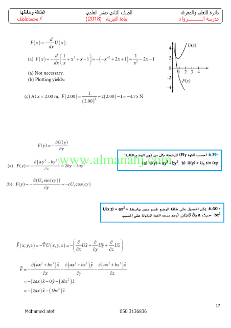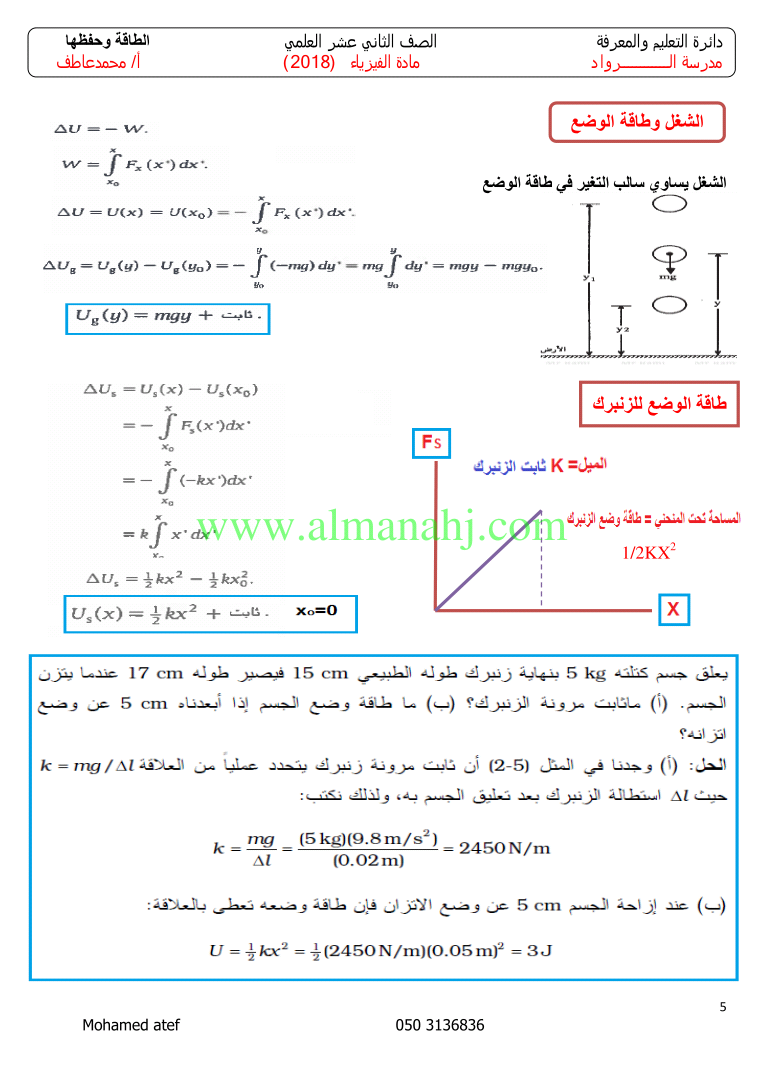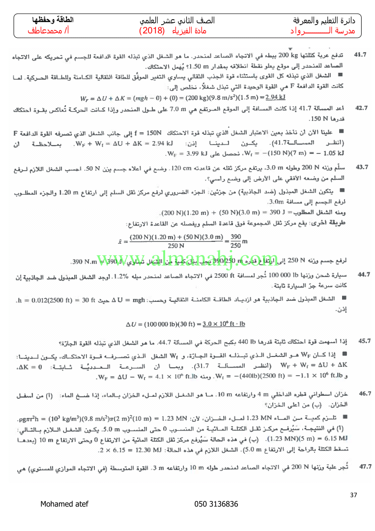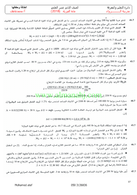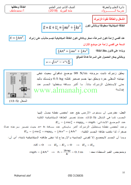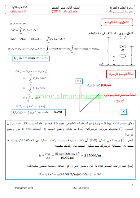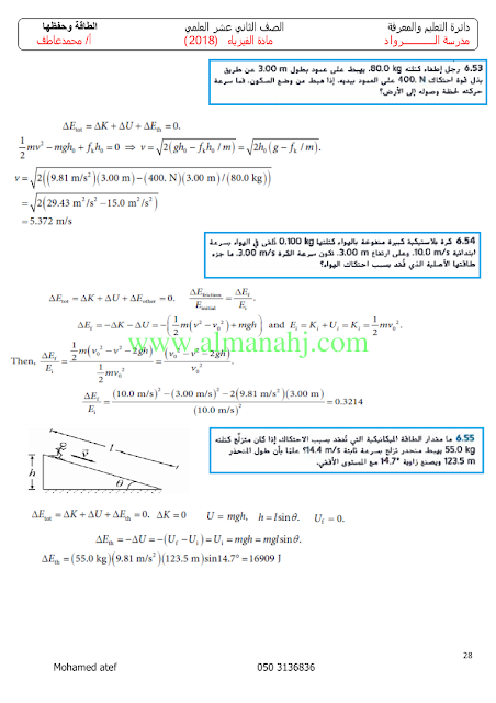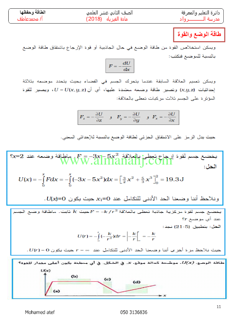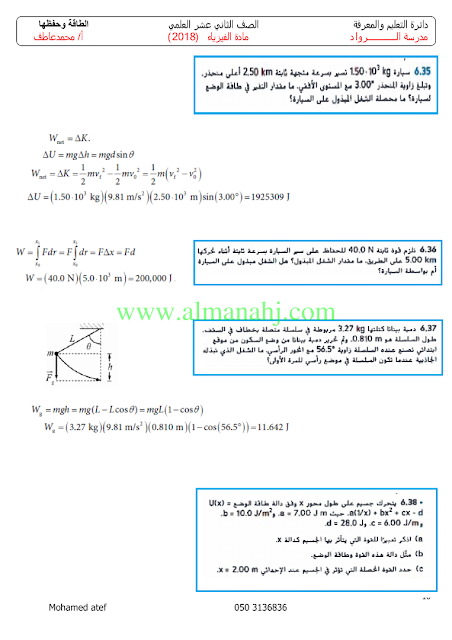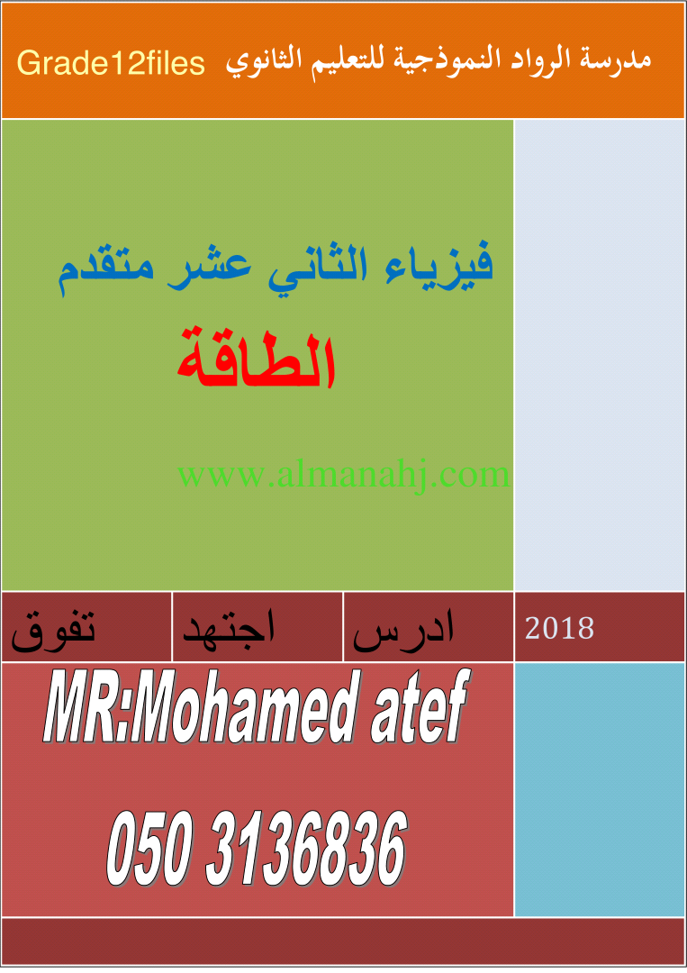 معلومات الملف: الصف الثاني عشر المتقدم, الفصل الثالث, فيزياء, 2017-2018, تلخيص الوحدة6 الطاقة | |||