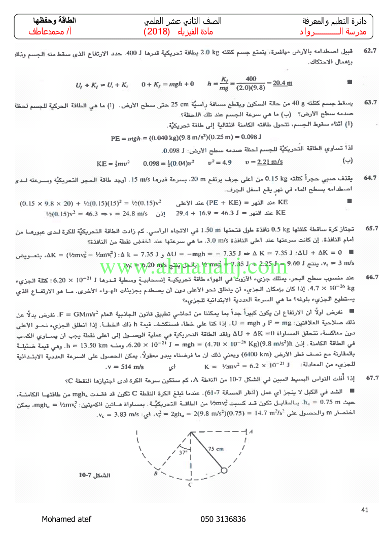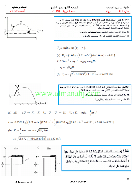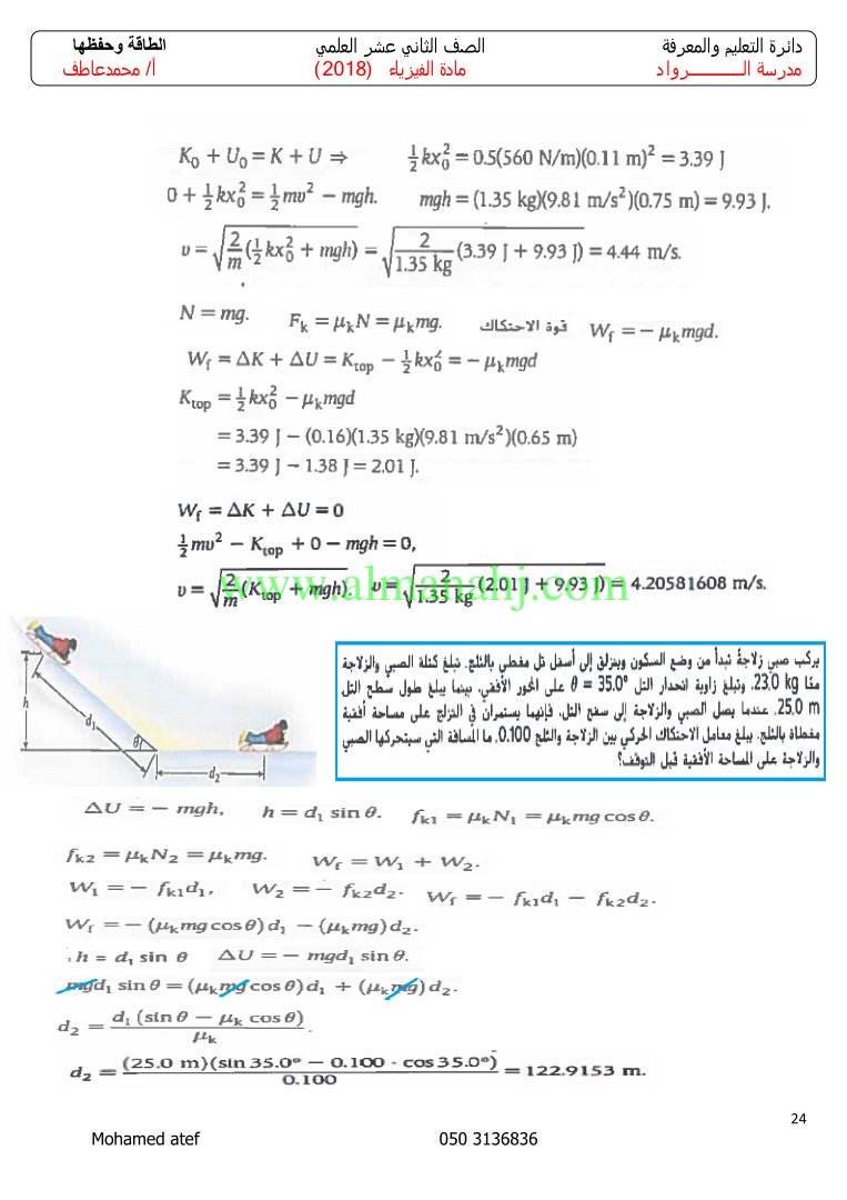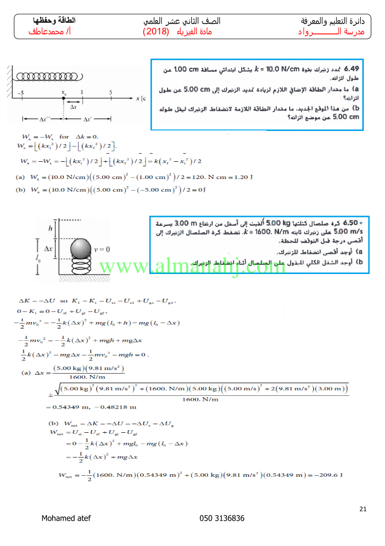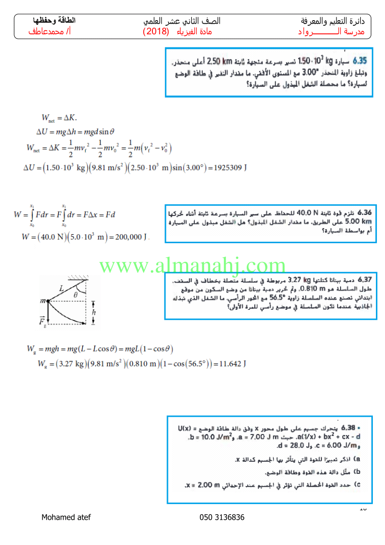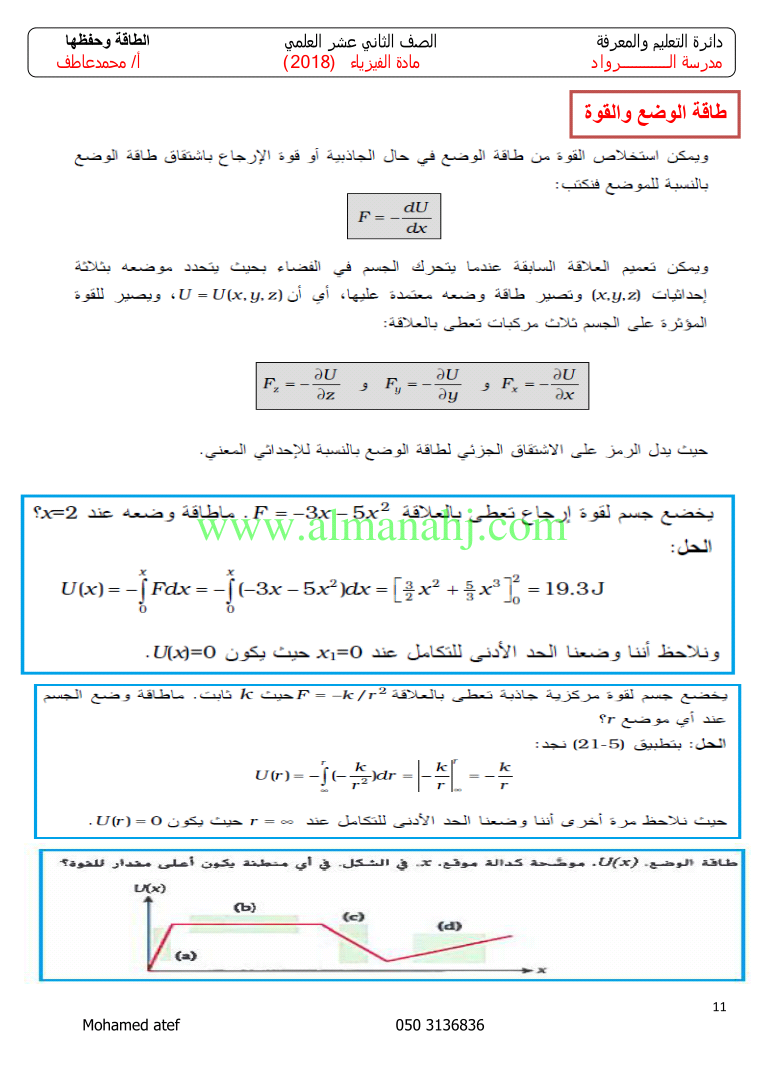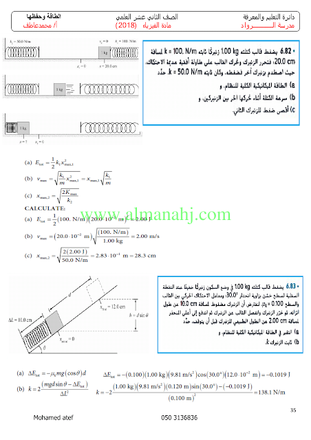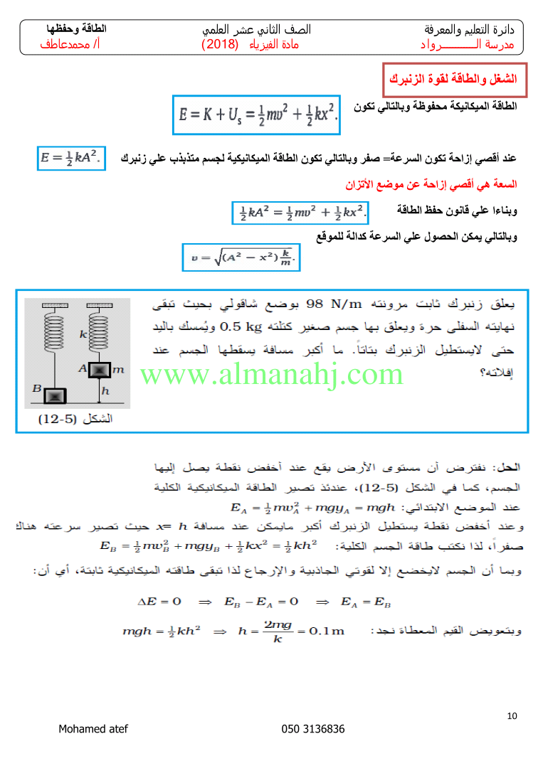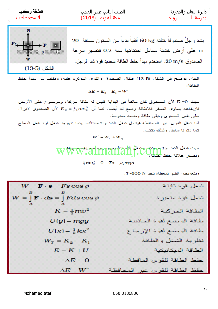 معلومات الملف: الصف الثاني عشر المتقدم, الفصل الثالث, فيزياء, 2017-2018, تلخيص الوحدة6 الطاقة | |||