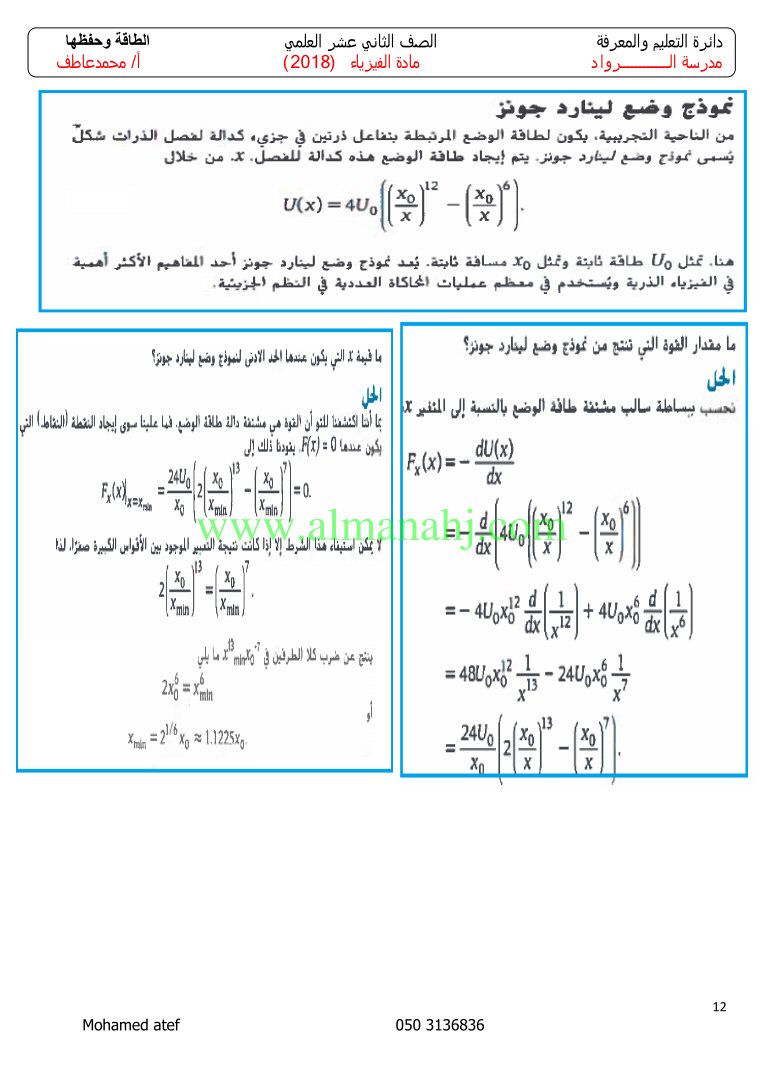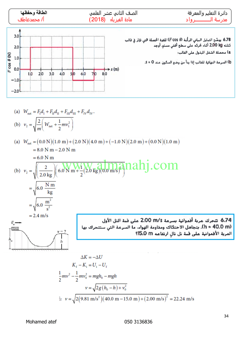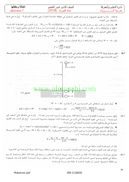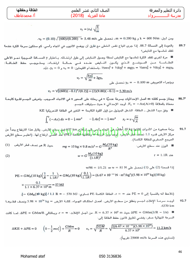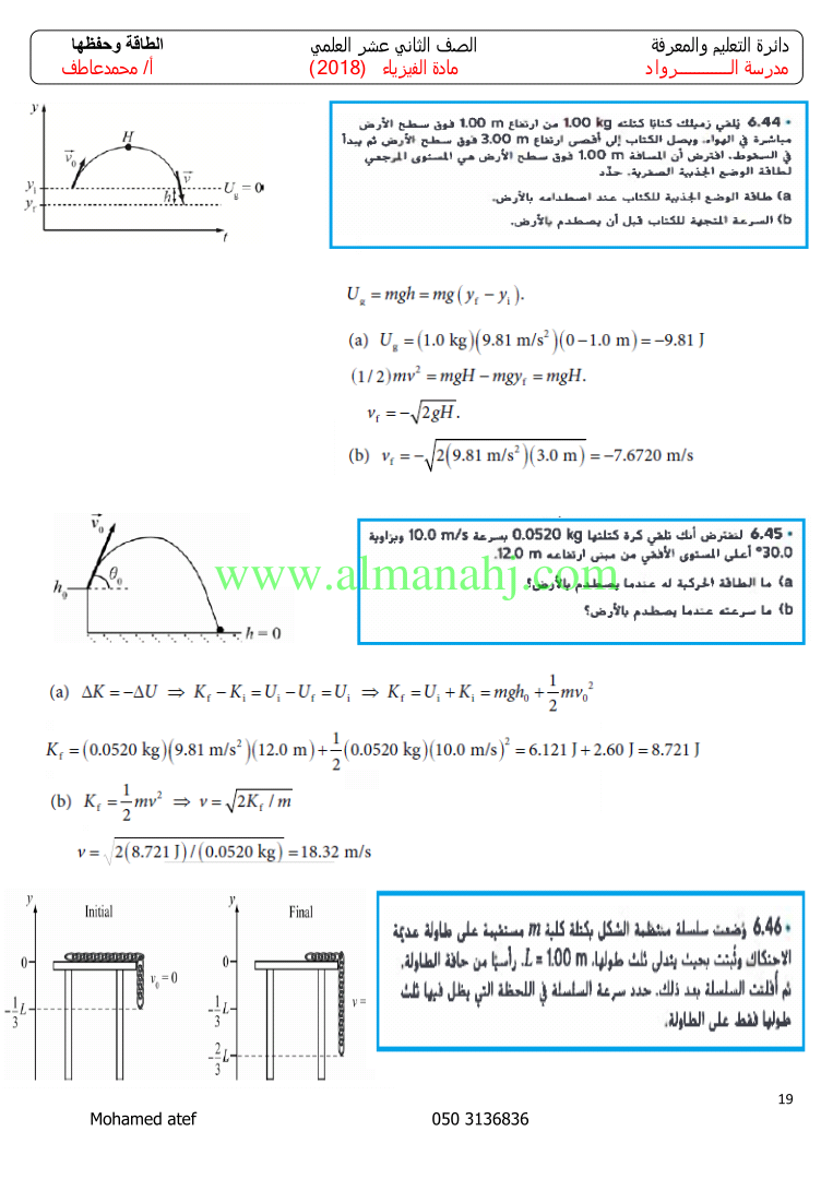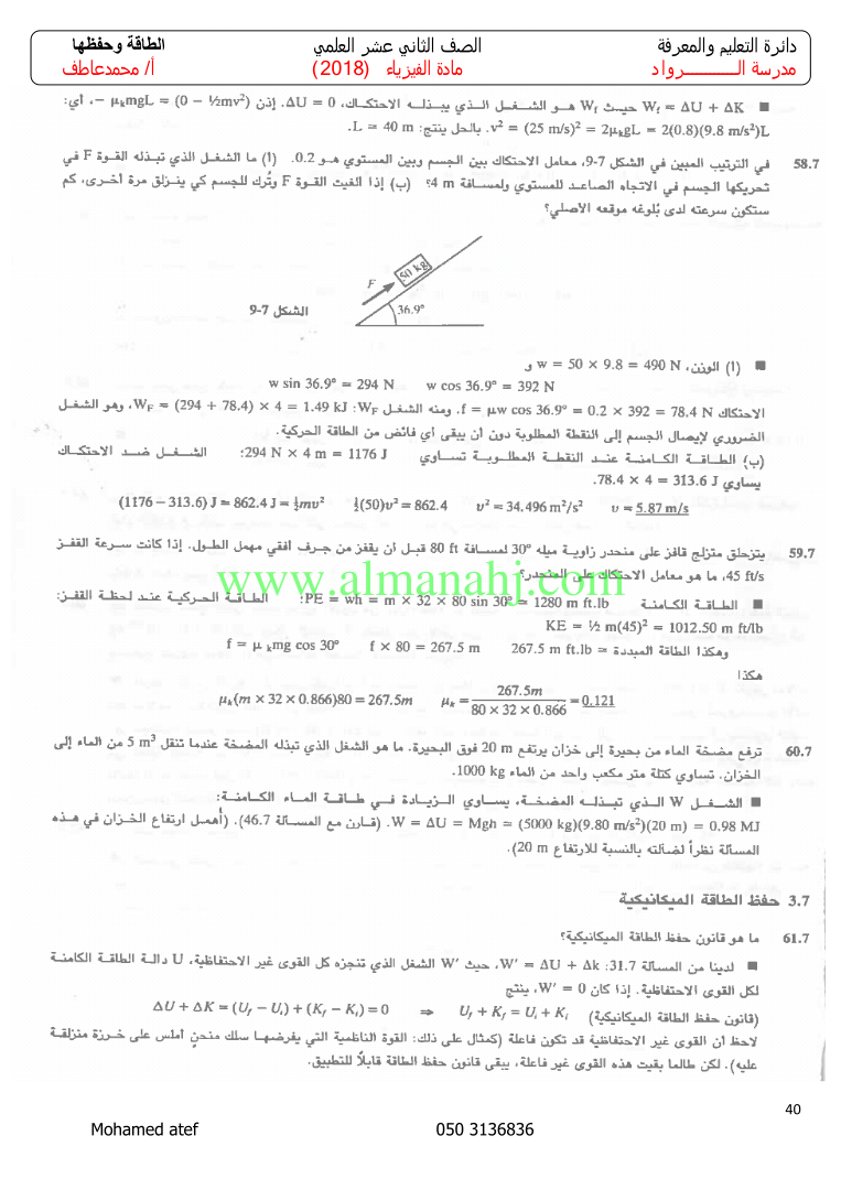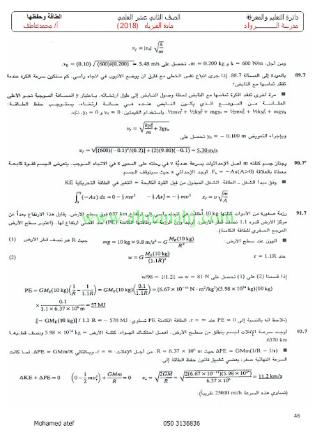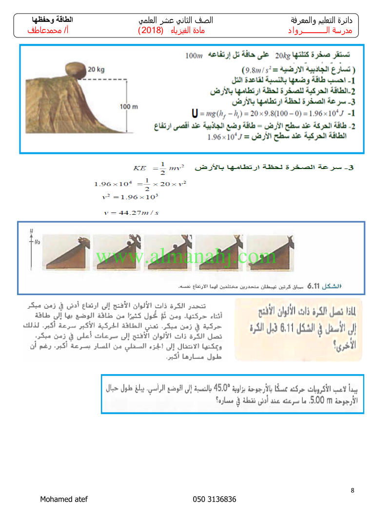معلومات الملف: الصف الثاني عشر المتقدم, الفصل الثالث, فيزياء, 2017-2018, تلخيص الوحدة6 الطاقة | |||