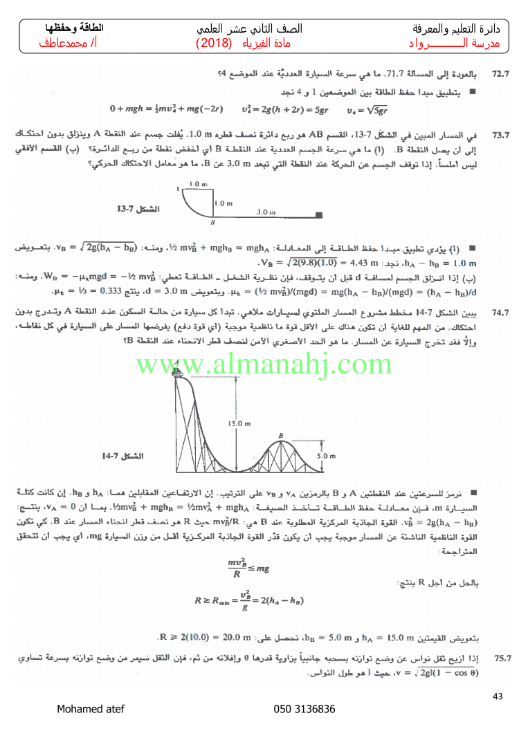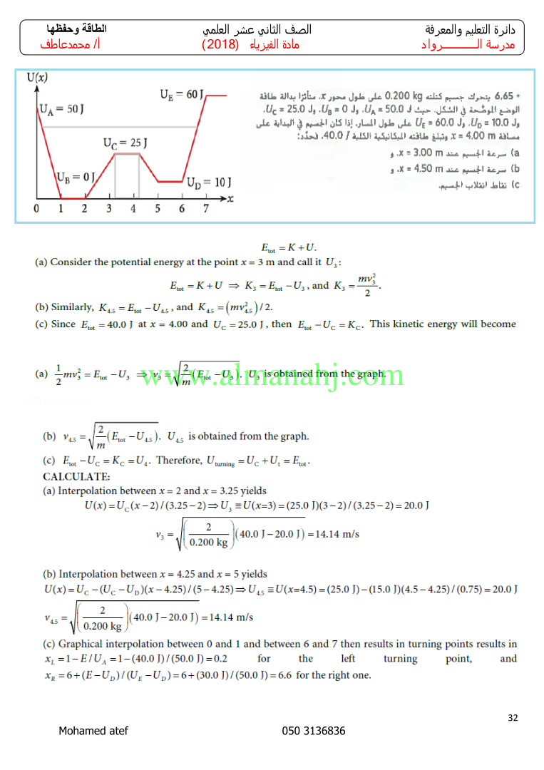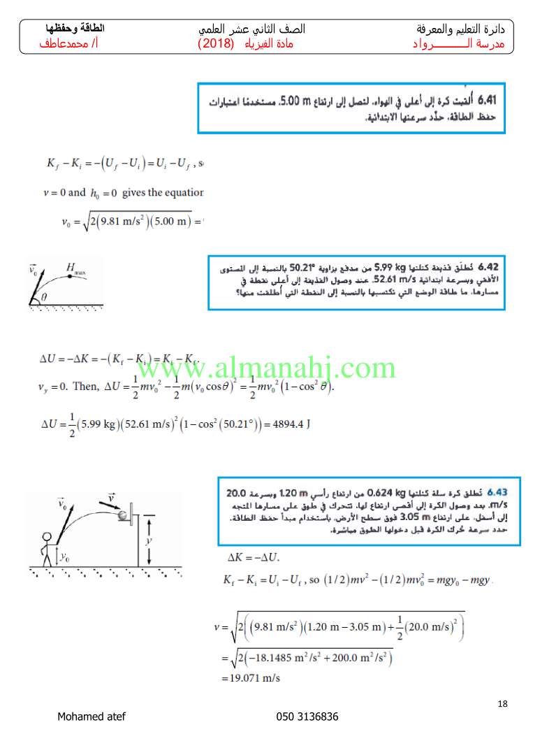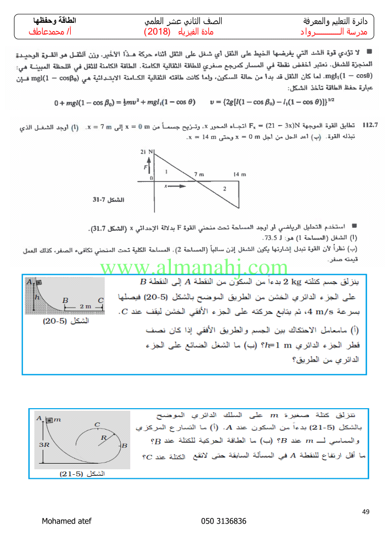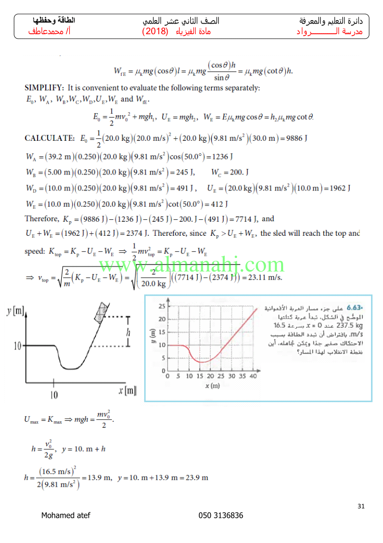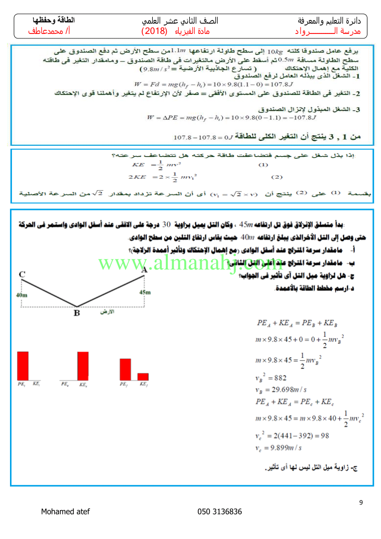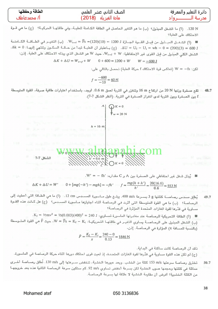 معلومات الملف: الصف الثاني عشر المتقدم, الفصل الثالث, فيزياء, 2017-2018, تلخيص الوحدة6 الطاقة | |||