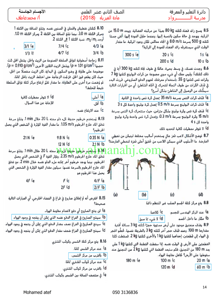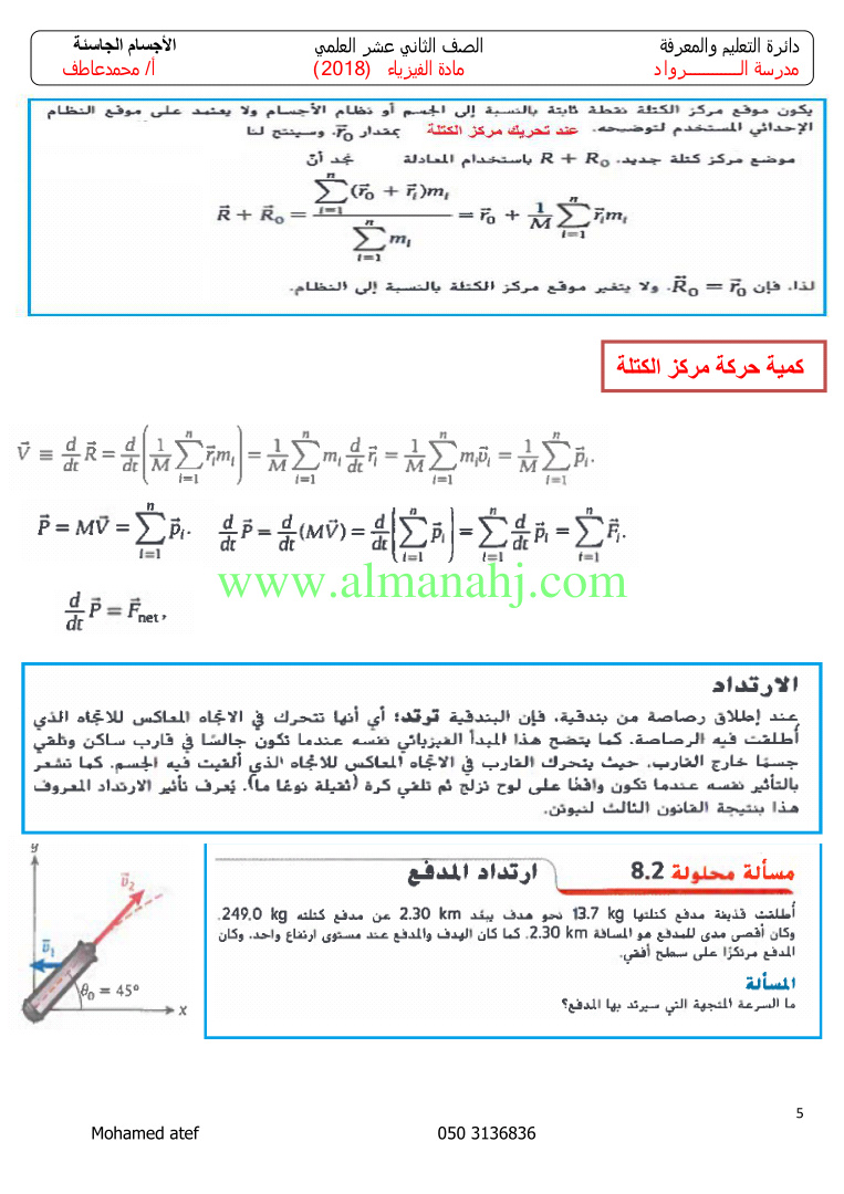معلومات الملف: الصف الثاني عشر المتقدم, الفصل الثالث, فيزياء, 2017-2018, تلخيص الوحدة 8 الاجسام الجاسئة | |||