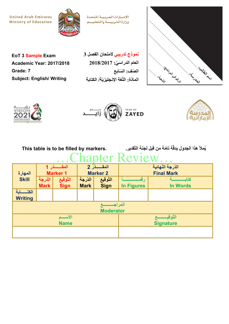 معلومات الملف: الصف السابع, الفصل الثالث, لغة انكليزية, 2017-2018,نموذجكتابة | |||