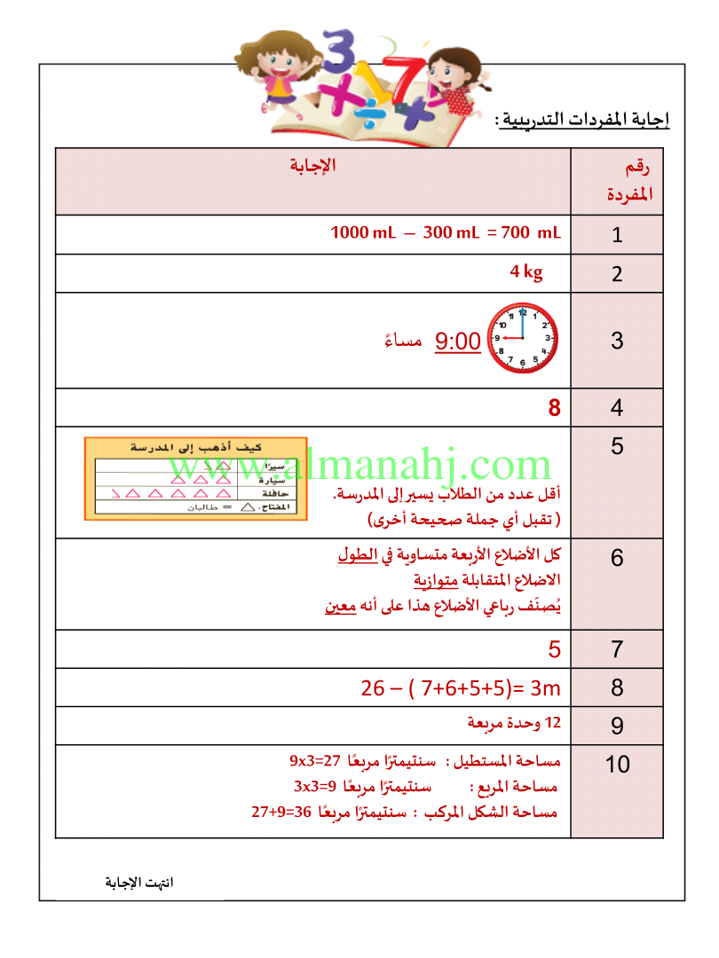 معلومات الملف: الصف الثالث, الفصل الثالث, رياضيات, 2017-2018, النموذج التدريبي لمادة الرياضيات الفصل الثالث | |||