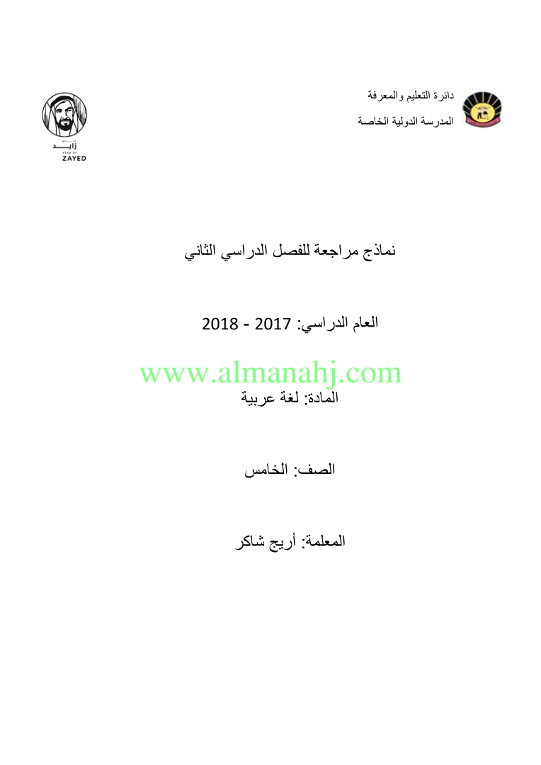 معلومات الملف: الصف الخامس, الفصل الثاني, لغة عربية, 2017-2018, نماذج لغة عربية | |||