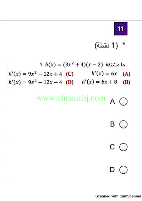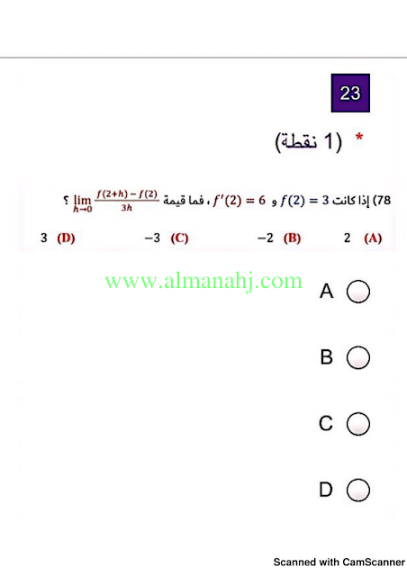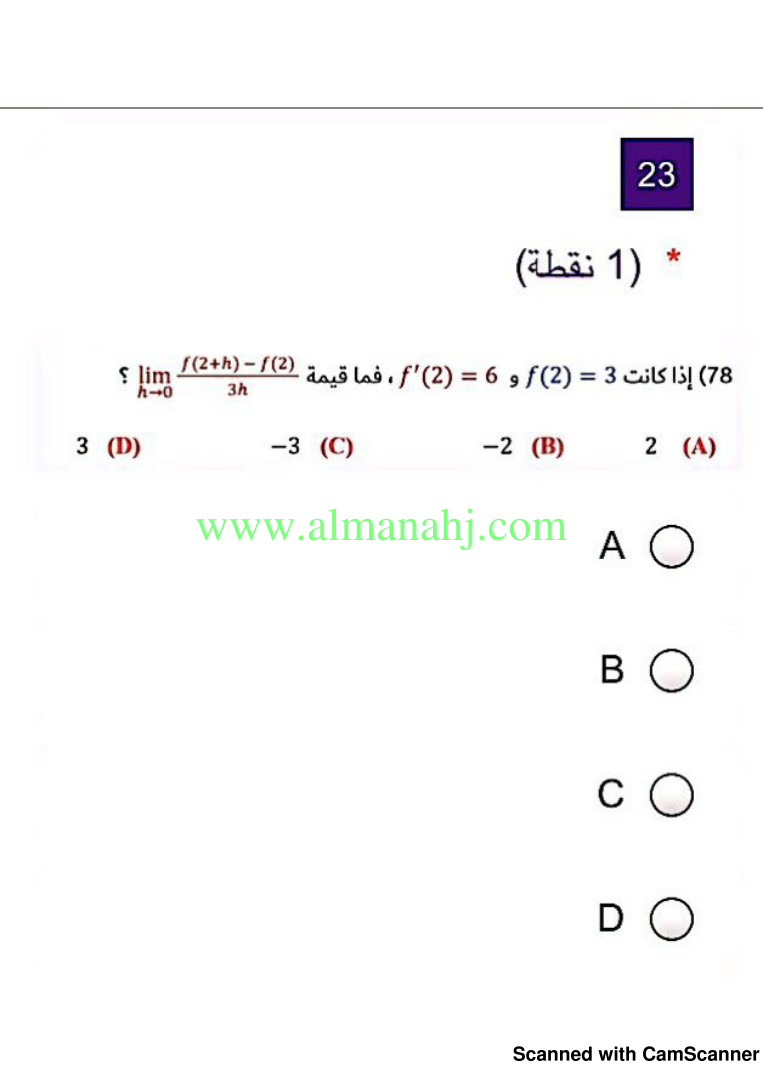 اسئلة مراجعة ثانية لوحدة المشتقات | |||