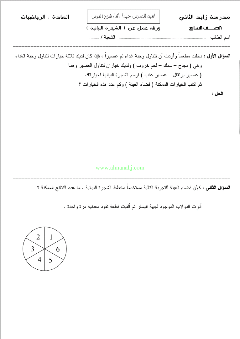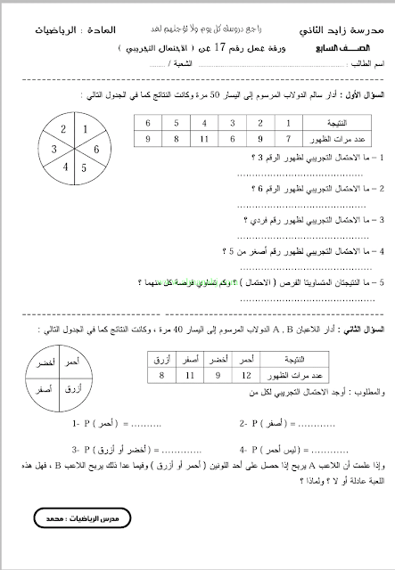 أنت هنا: موقع المناهج ⇦ المناهج الإماراتية ⇦ الصف السابع ⇦ رياضيات ⇦ الفصل الثالث ⇦ أوراق عمل |