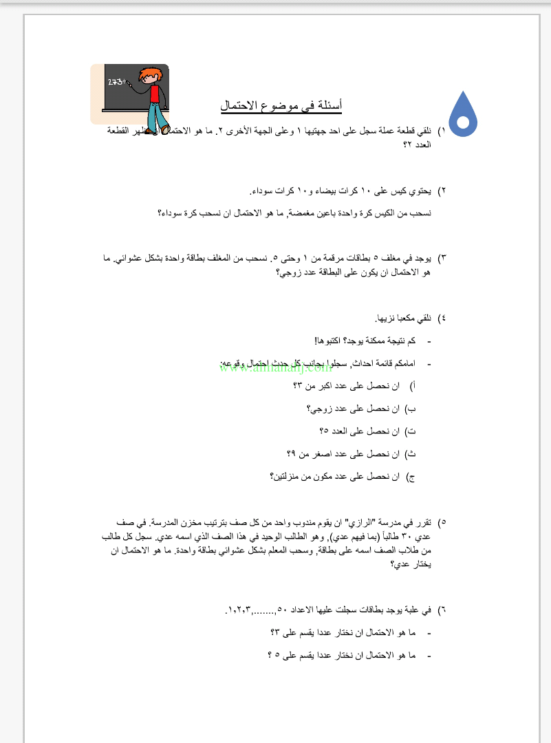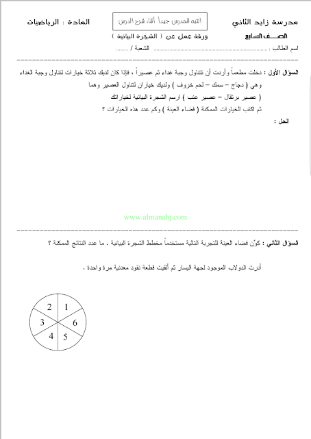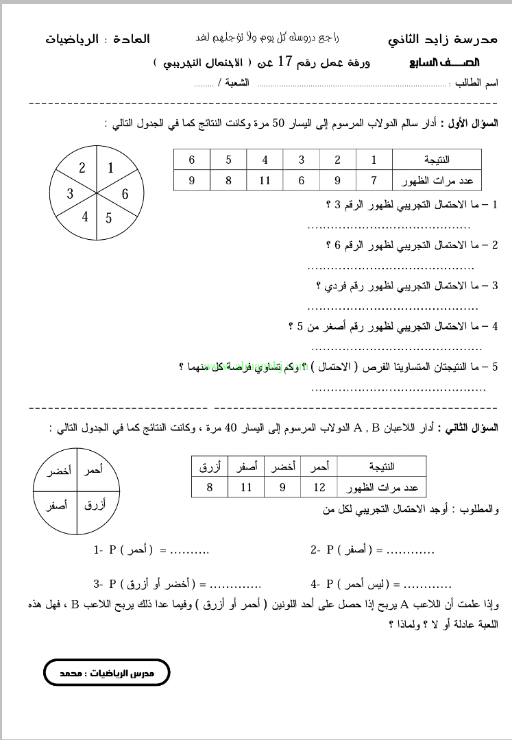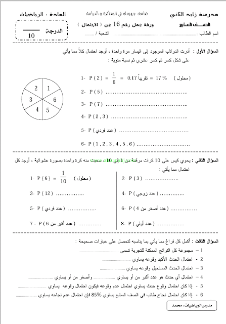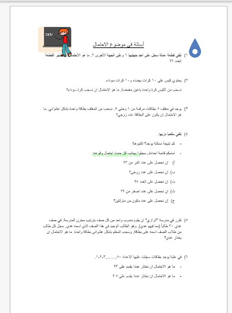معلومات الملف: الصف السابع, الفصل الثالث, رياضيات, 2017-2018, اوراق عمل اسئلة متنوعة | |||