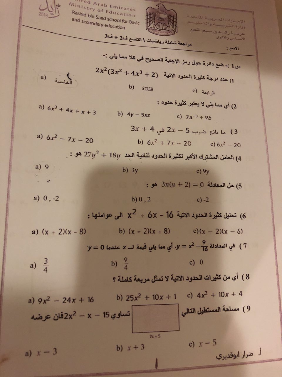 أنت هنا: موقع المناهج ⇦ المناهج الإماراتية ⇦ الصف التاسع ⇦ رياضيات ⇦ الفصل الثالث ⇦ أوراق عمل |