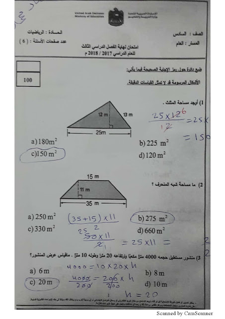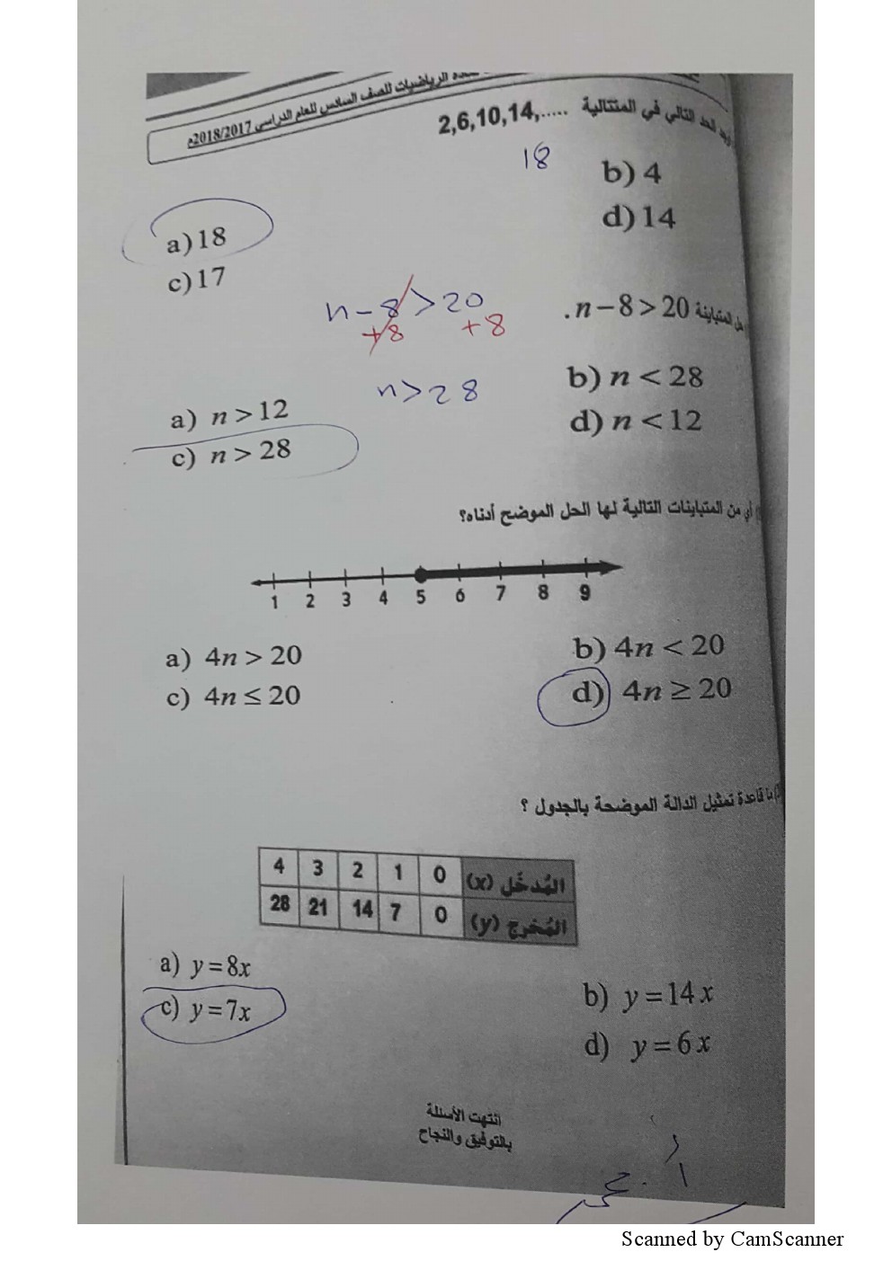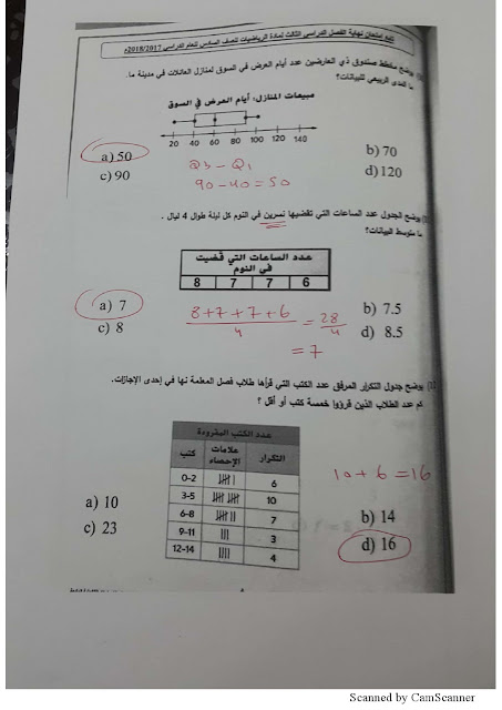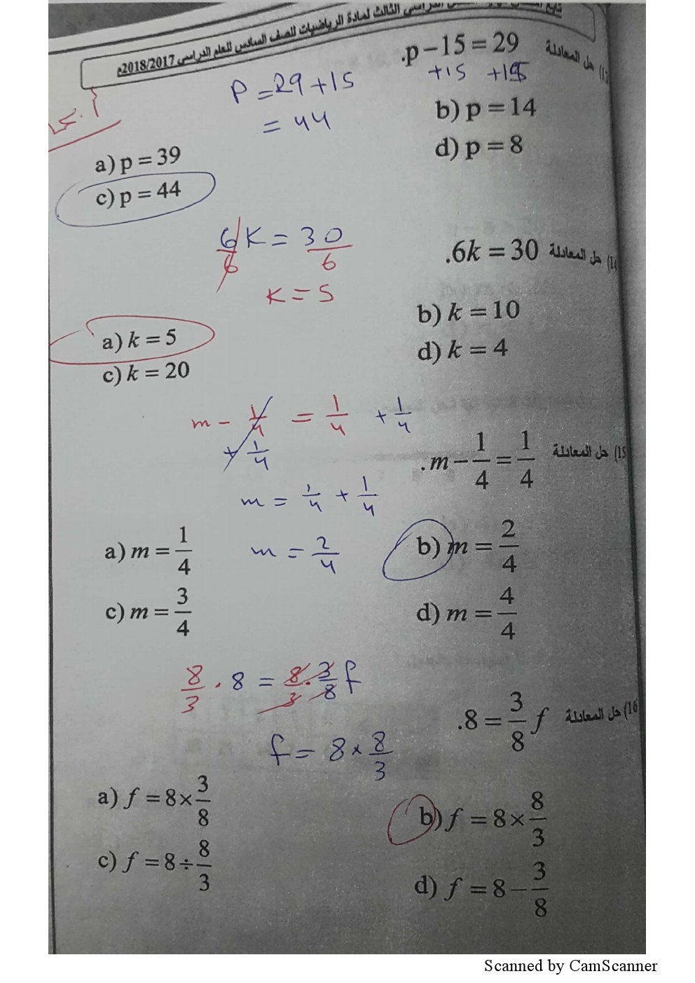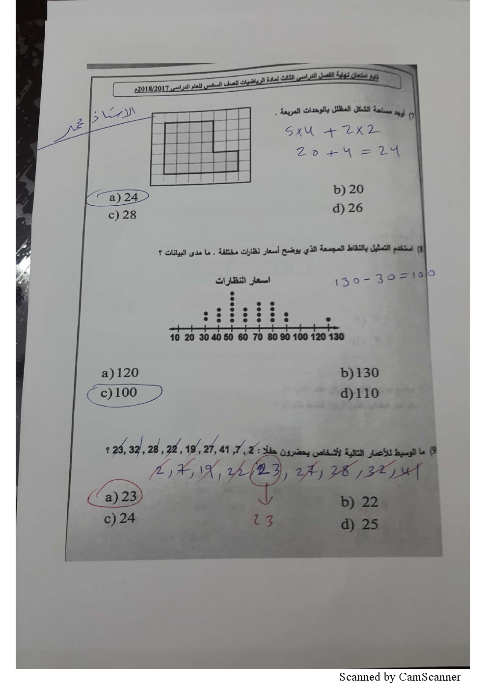 معلومات الملف: الصف السادس, الفصل الثالث, رياضيات, 2017-2018, حل الاسئلة (إعداد المدرس محمد) | |||