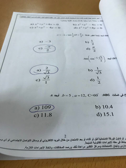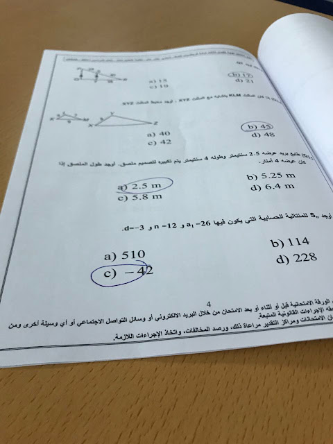 15. الصف الأول, رياضيات, نموذج اختبار تشخيصي من مدرسة سلمان الفارسي