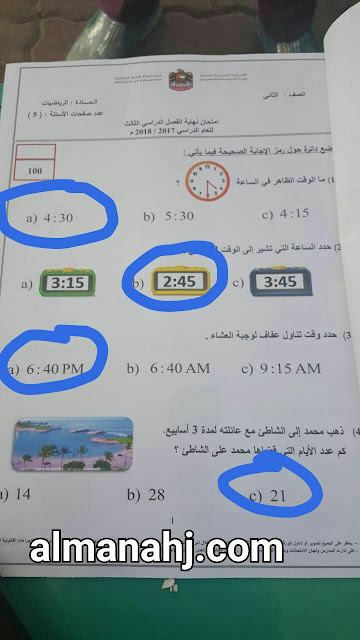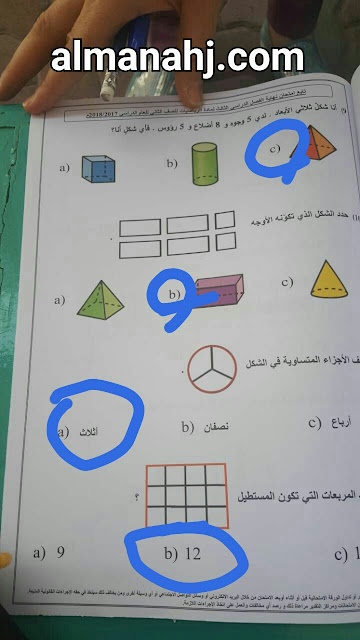 معلومات الملف: الصف الثاني, الفصل الثالث, رياضيات, 2017-2018, حل اسئلة الامتحان | |||