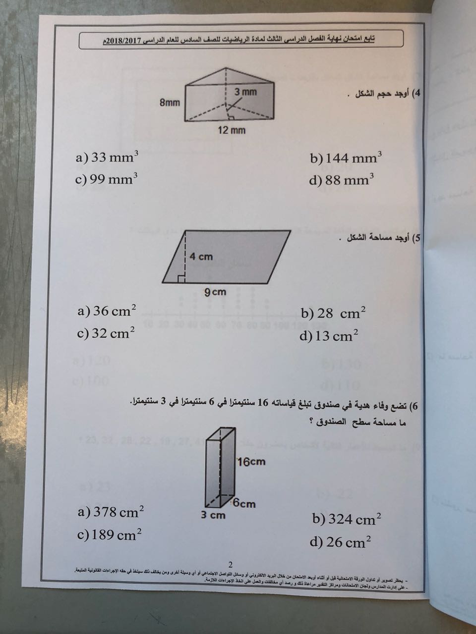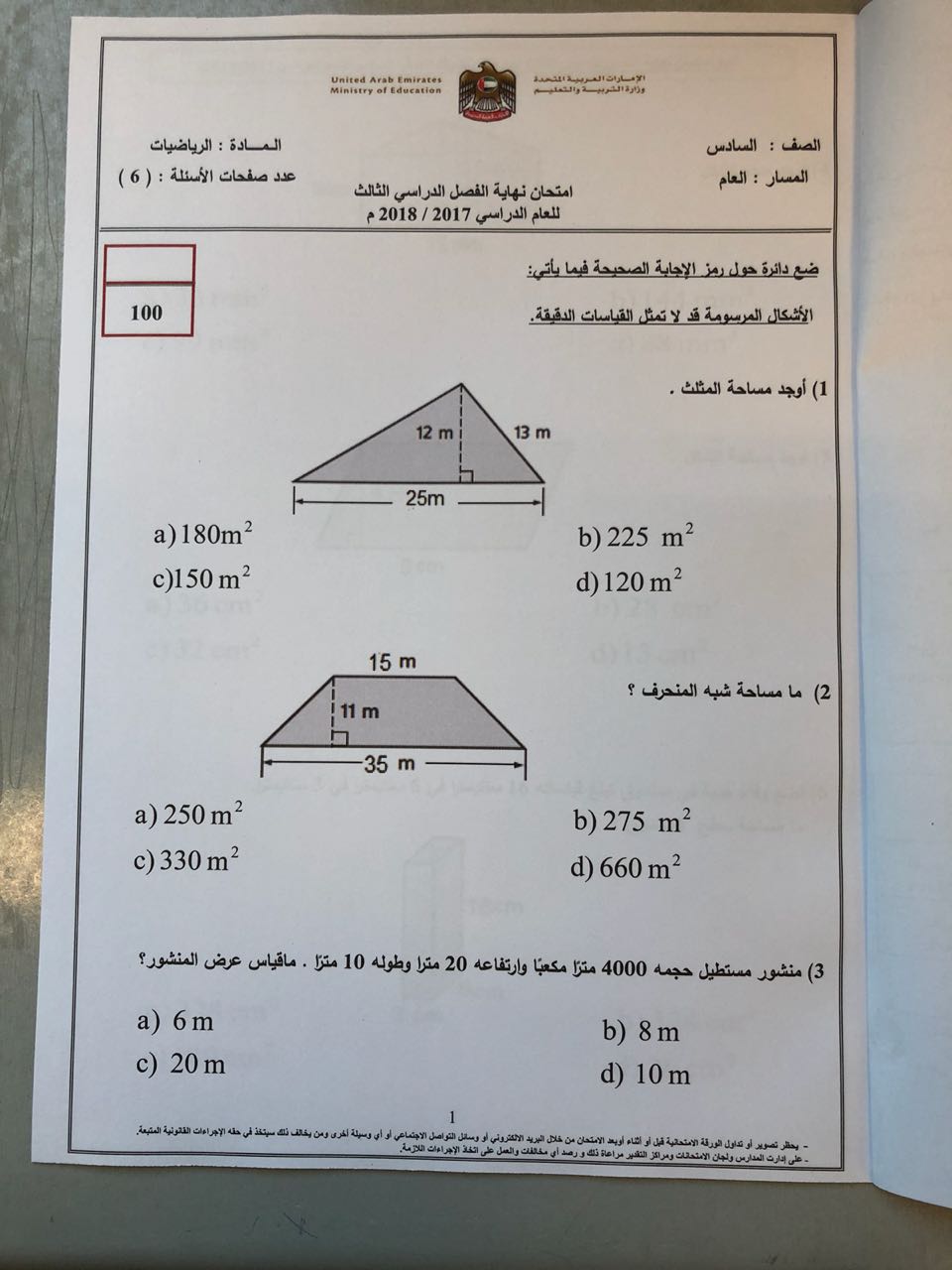 | أنت هنا: موقع المناهج ⇦ المناهج الإماراتية ⇦ الصف السادس ⇦ رياضيات ⇦ الفصل الثالث ⇦ الامتحان النهائي |