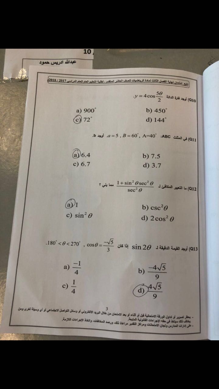 | أنت هنا: موقع المناهج ⇦ المناهج الإماراتية ⇦ الصف العاشر المتقدم ⇦ رياضيات ⇦ الفصل الثالث ⇦ الامتحان النهائي |