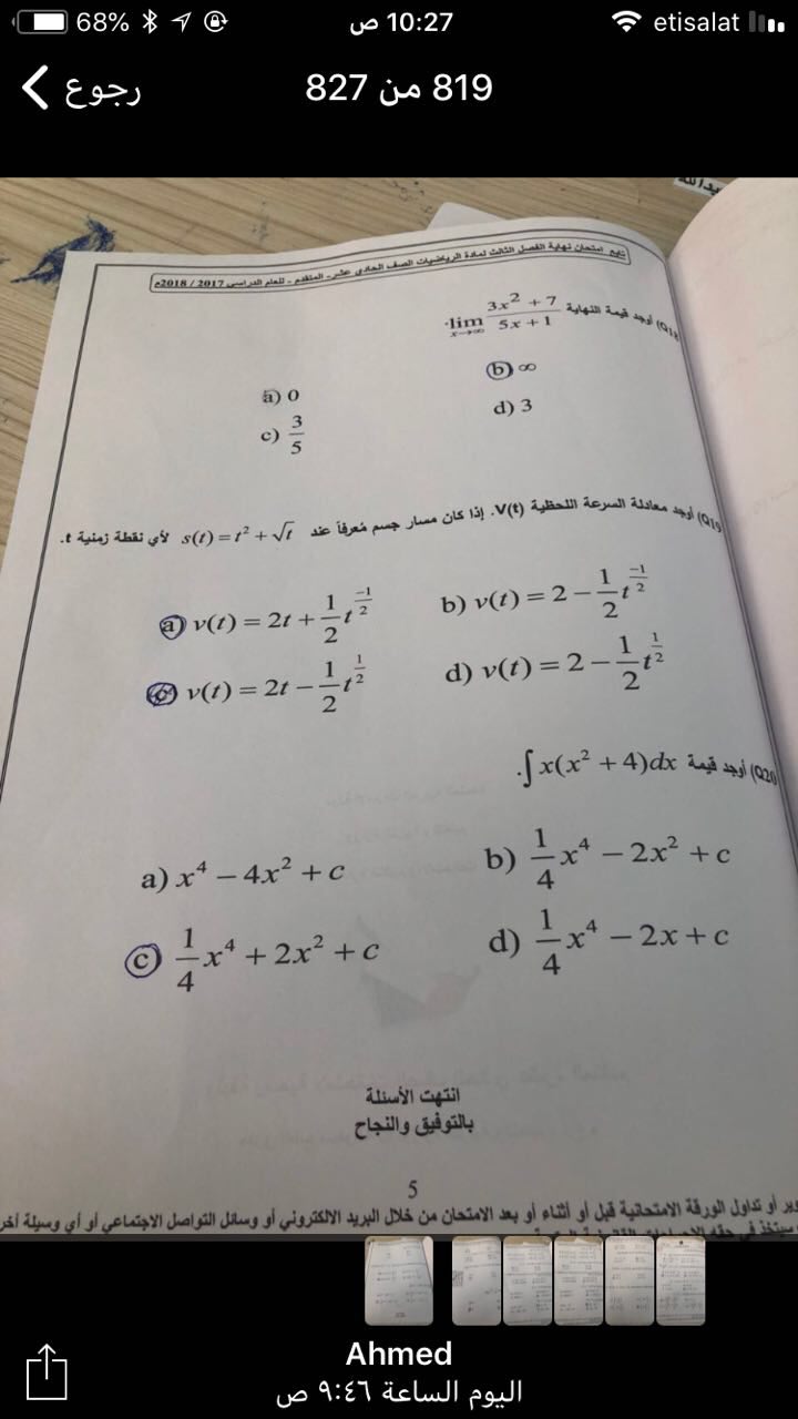 أنت هنا: موقع المناهج ⇦ المناهج الإماراتية ⇦ الصف الحادي عشر المتقدم ⇦ رياضيات ⇦ الفصل الثالث ⇦ الامتحان النهائي |