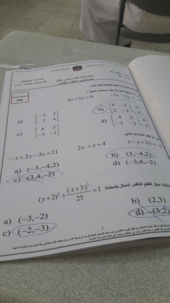 | أنت هنا: موقع المناهج ⇦ المناهج الإماراتية ⇦ الصف الثاني عشر العام ⇦ رياضيات ⇦ الفصل الثالث ⇦ الامتحان النهائي |