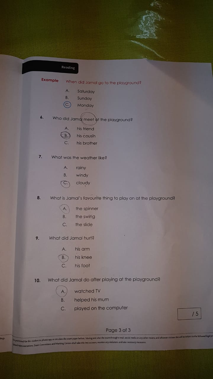 معلومات الملف: الصف الثالث, الفصل الثالث, لغة انكليزية, 2017-2018, امتحان نهاية الفصل الثالث لعام 2017-2018 | ||