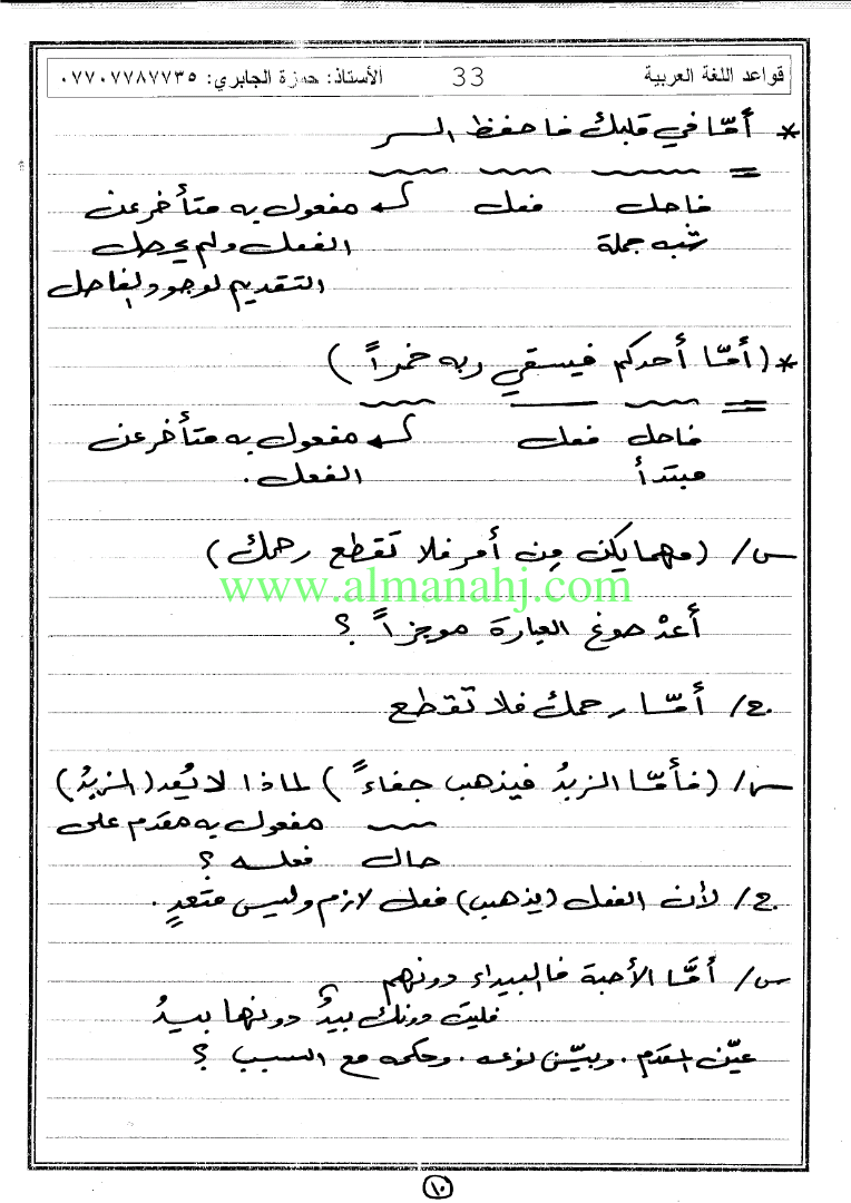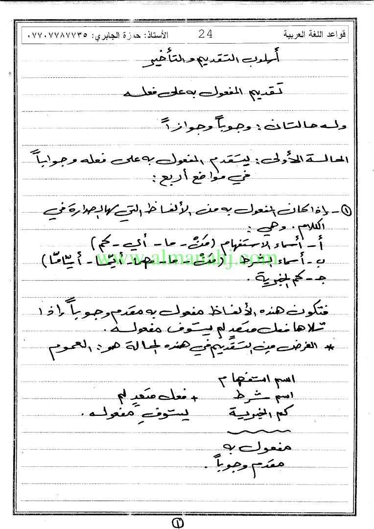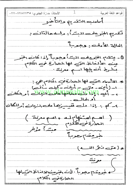 معلومات الملف: الصف العاشر, الفصل الثالث, لغة عربية, 2017-2018, سلوب التقديم والتأخير | |||