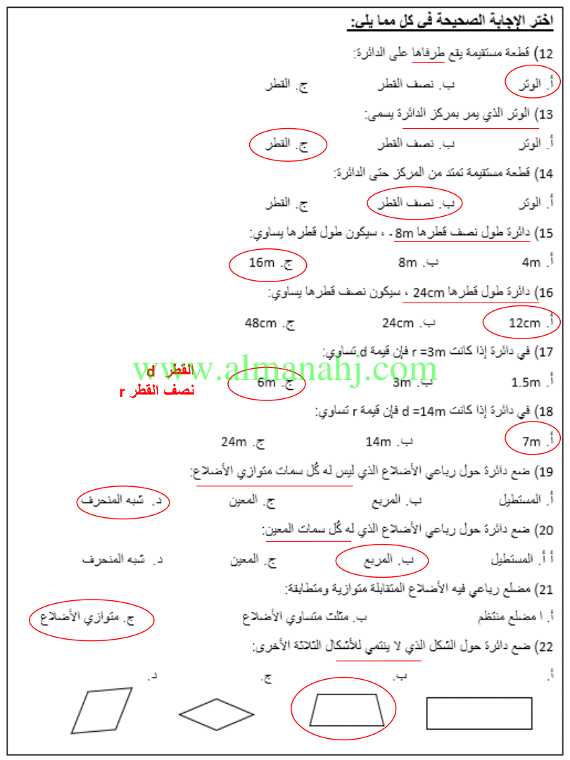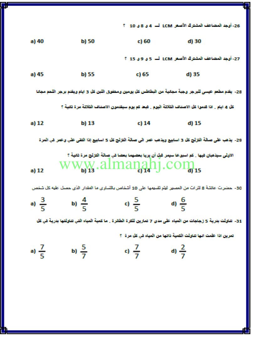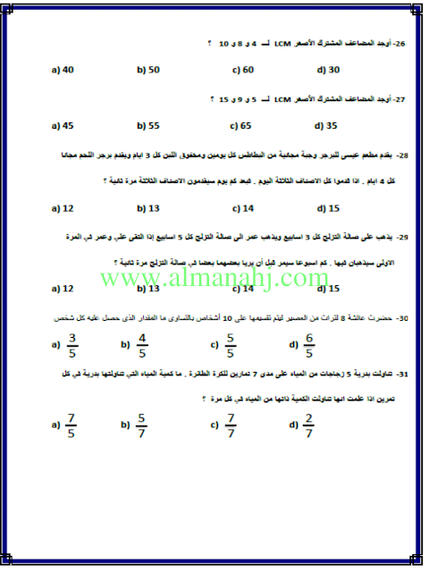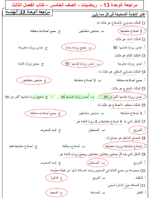 معلومات الملف: الصف الخامس, الفصل الثالث, رياضيات, 2017-2018, مراجعة شاملة للصف الخامس الفصل الثاني والثالث مع الحل | |||