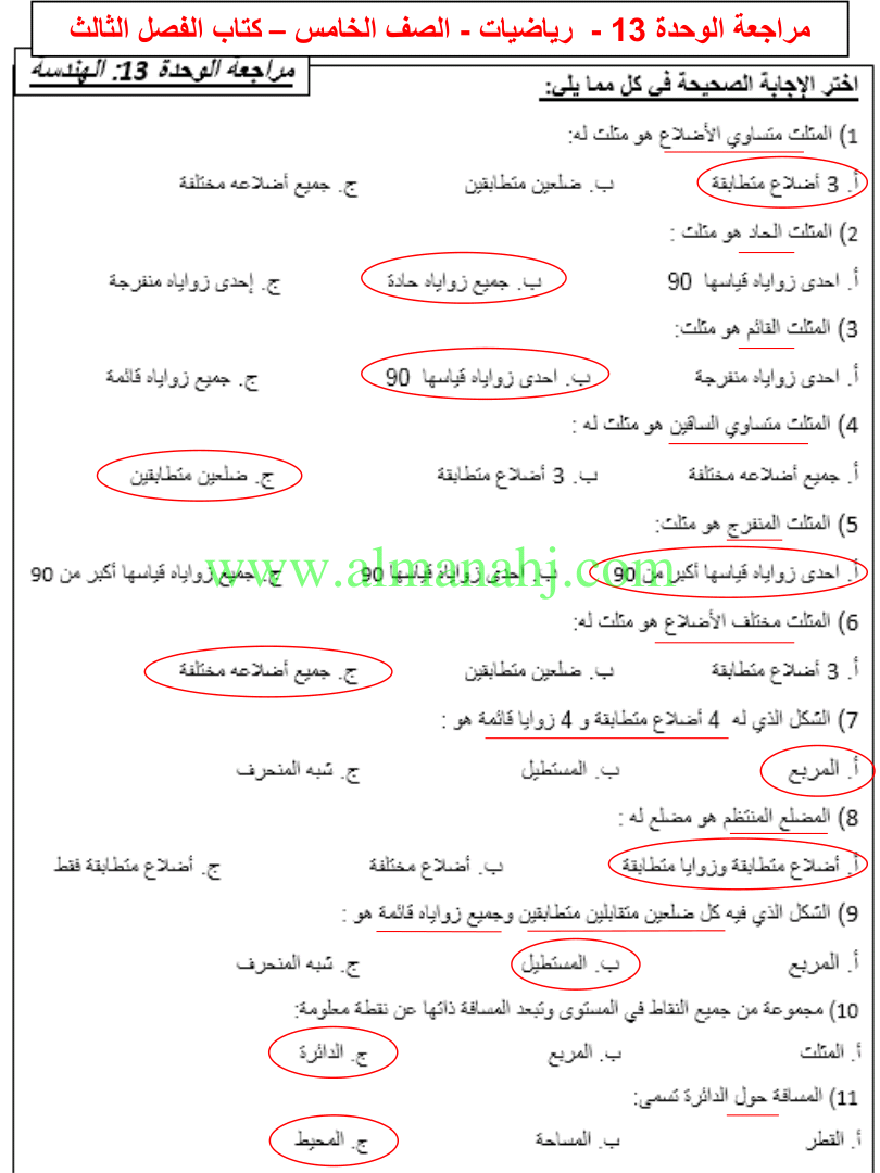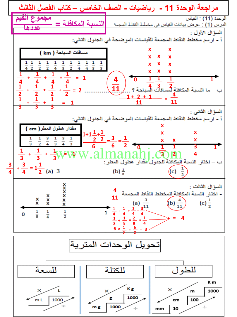 مراجعة شاملة للصف الخامس الفصل الثاني والثالث مع الحل | |||