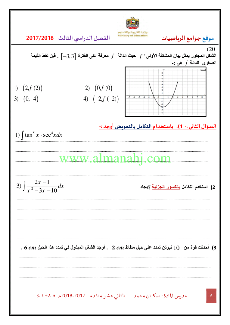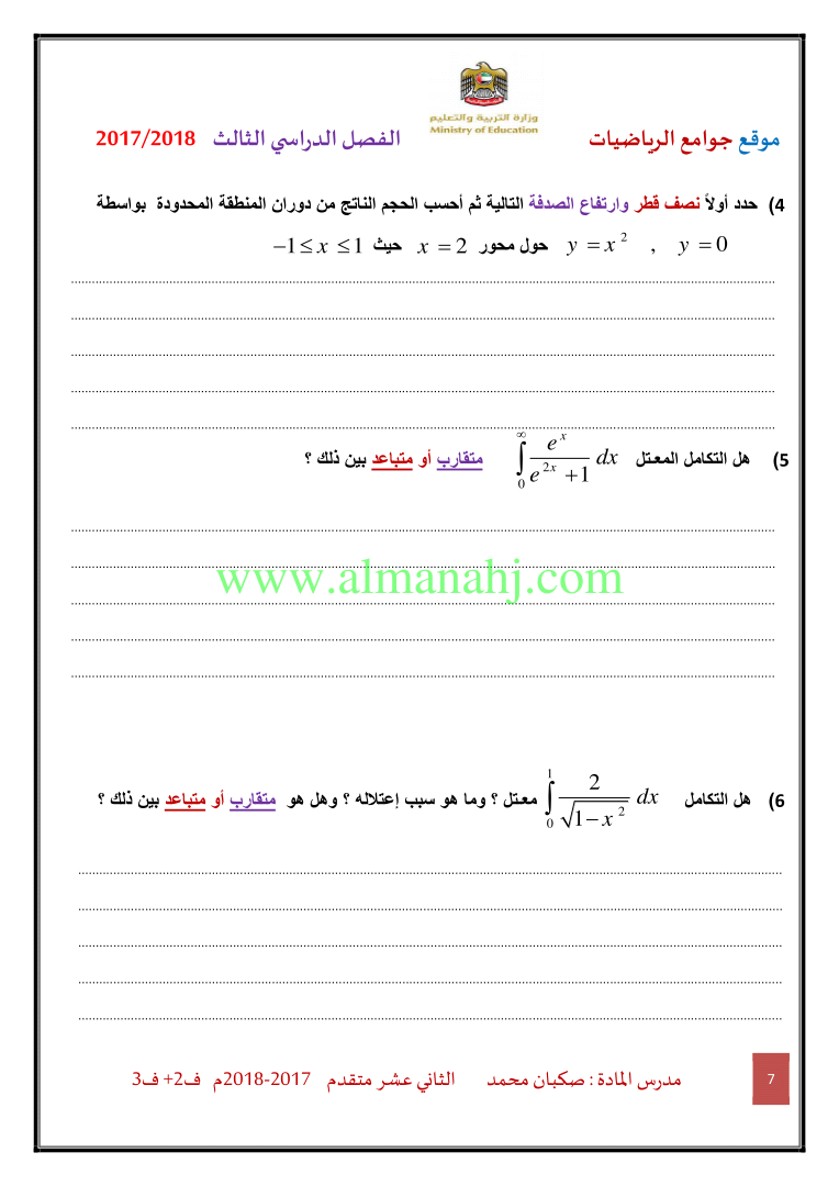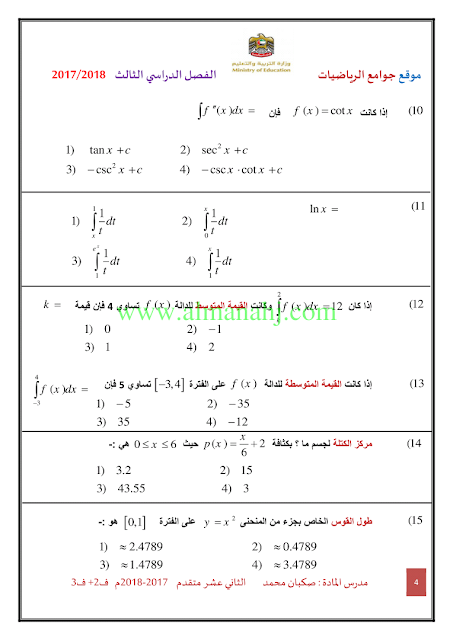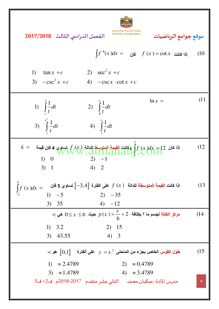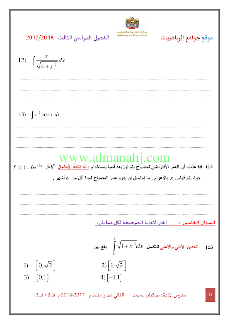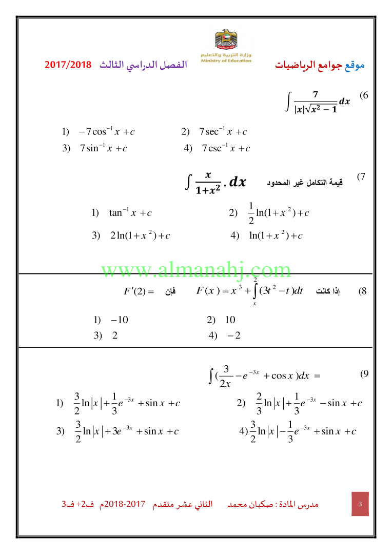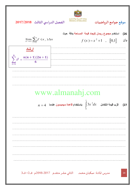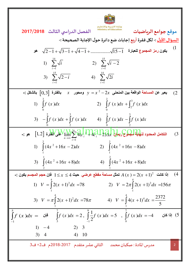 معلومات الملف: الصف الثاني عشر المتقدم, الفصل الثالث, رياضيات, 2017-2018, ملزمة رياضيات الفصلين الثاني والثالث | |||