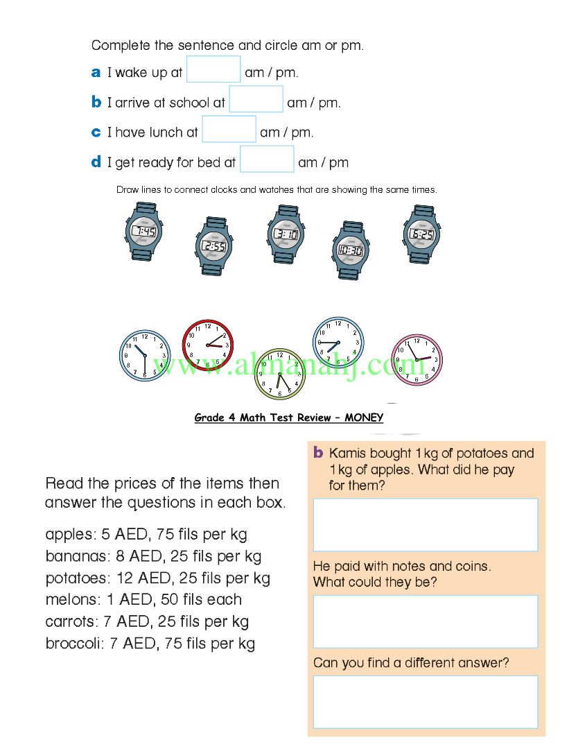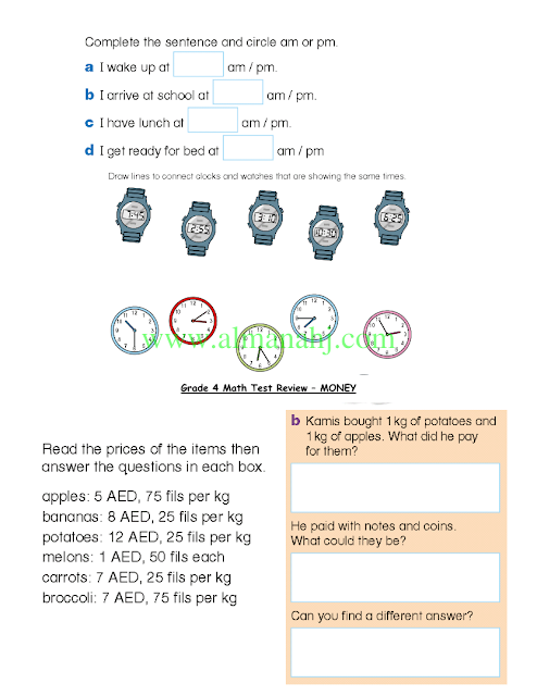 منهج انجليزي الصف الرابع رياضيات الفصل الثالث