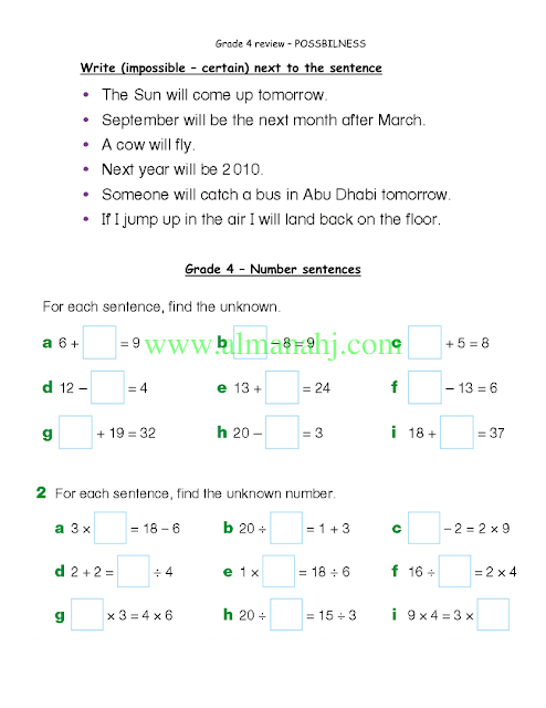 الصف الرابع, الفصل الثالث, رياضيات, 2017-2018, اوراق عمل رياضيات 2 مجلس