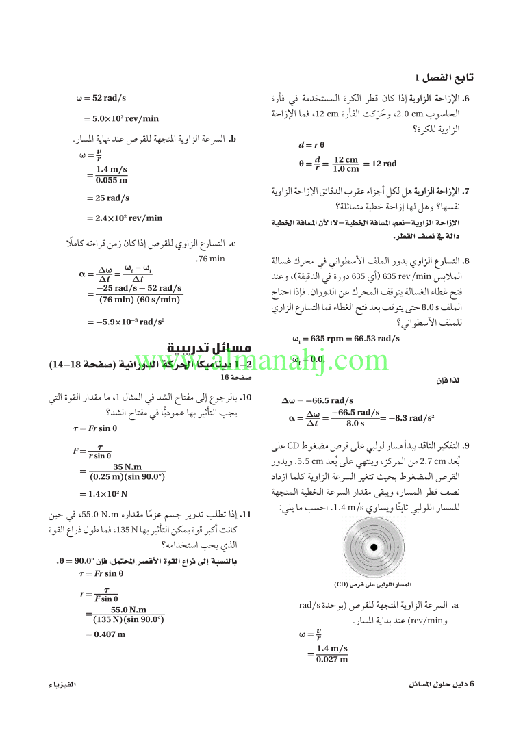 معلومات الملف: الصف العاشر المتقدم, الفصل الثالث, فيزياء, 2017-2018, حل الحركة الدورانية | |||