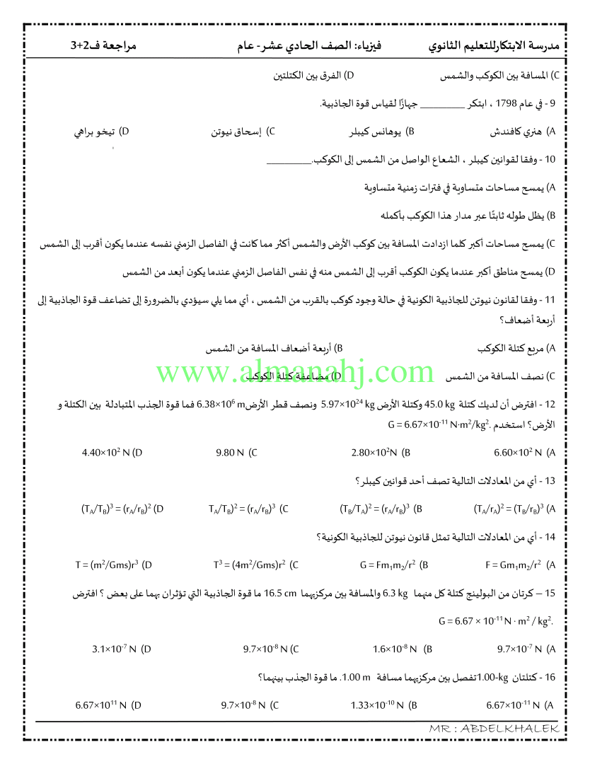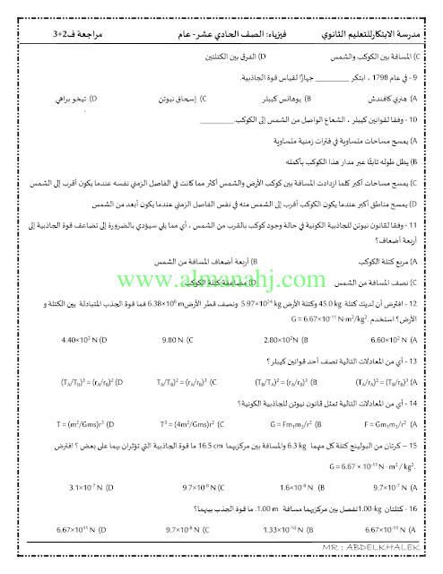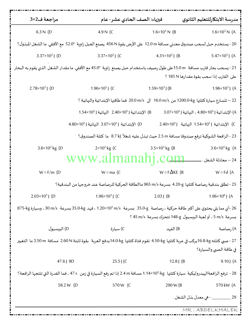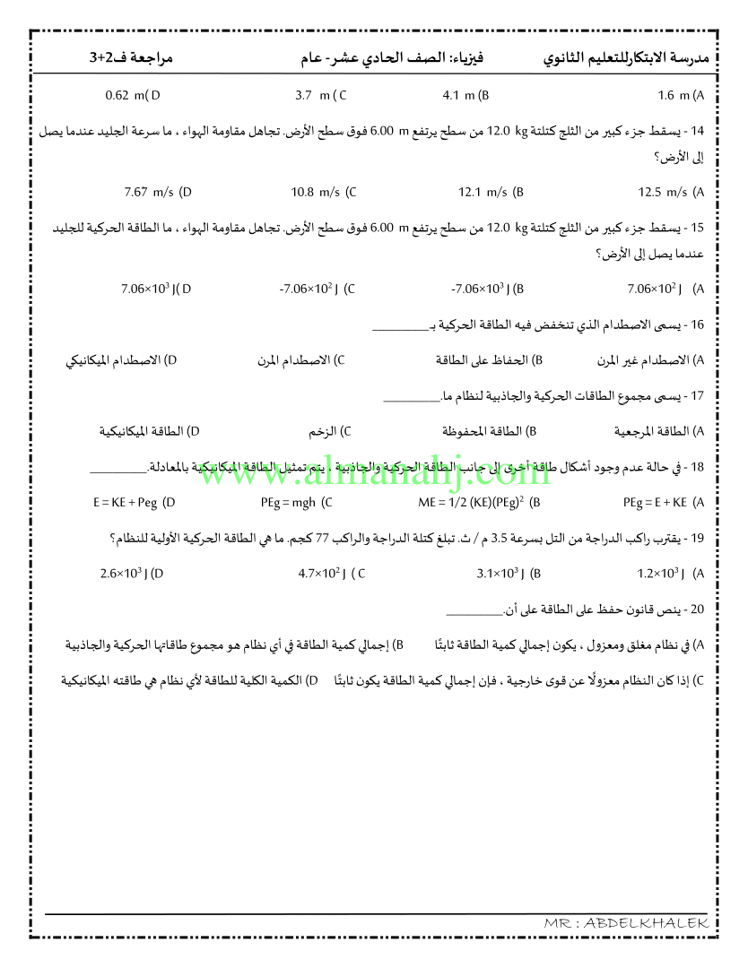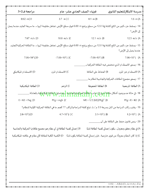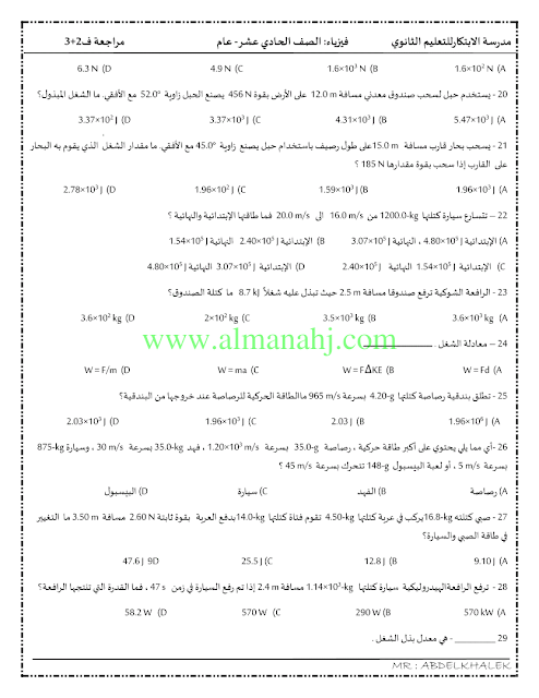 معلومات الملف: الصف الحادي عشر العام, الفصل الثالث, فيزياء, 2017-2018, مراجعة غير محلولة للفصل الثاني والثالث | |||