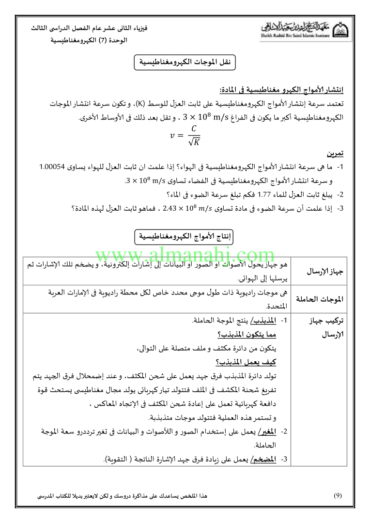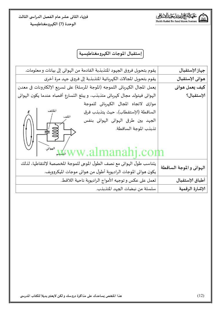 معلومات الملف: الصف الثاني عشر العام, الفصل الثالث, فيزياء, 2017-2018, الوحدة7 الكهرومغناطيسية | |||